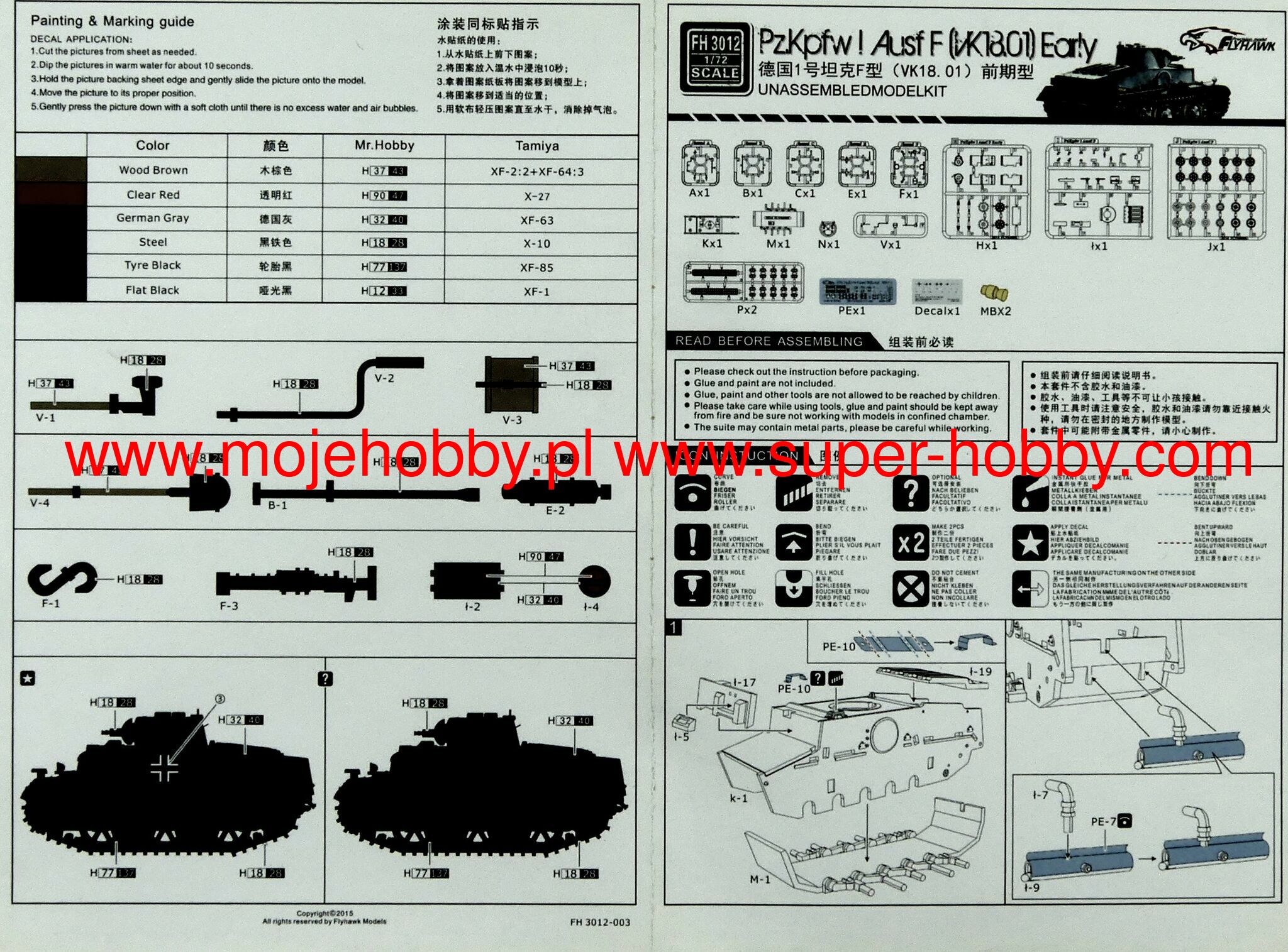 3012 GERMAN PZKPFW. I AUSF F (VK18.01) EARLY fly hawk model 1/72