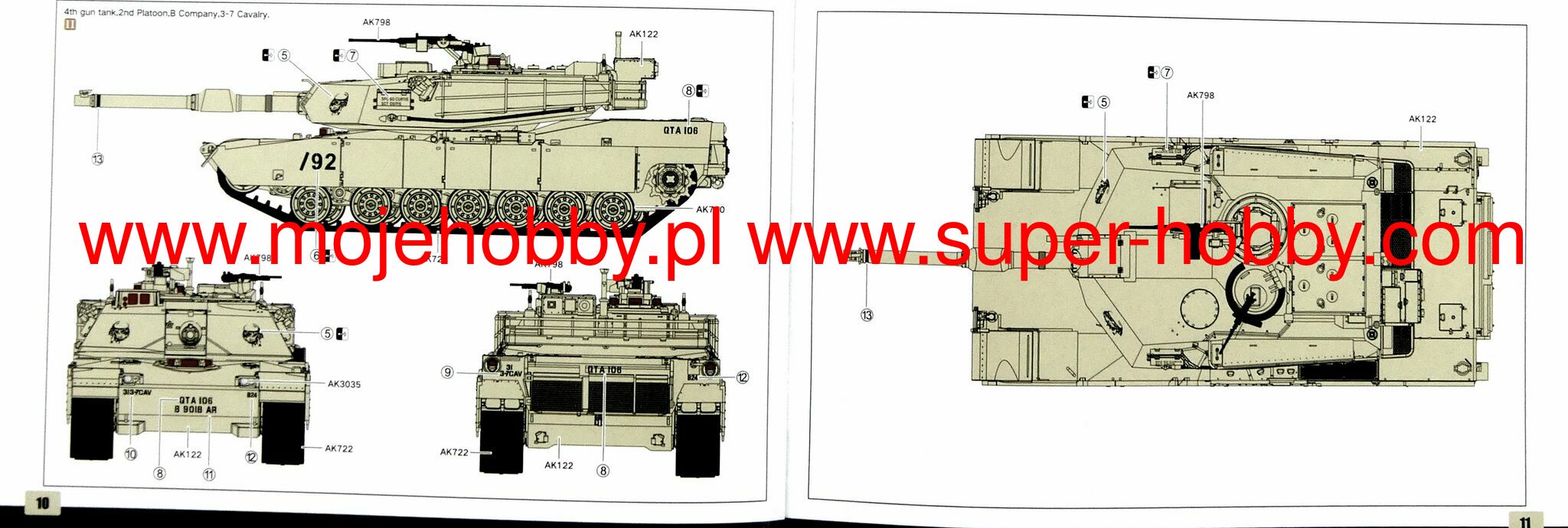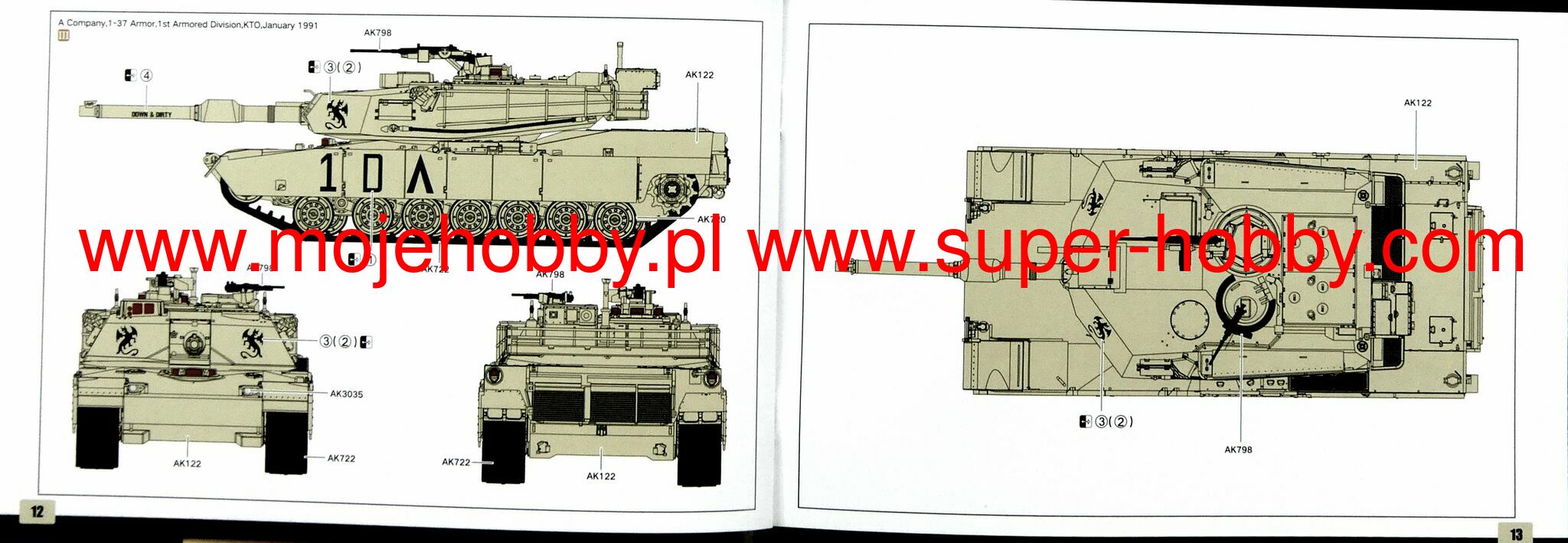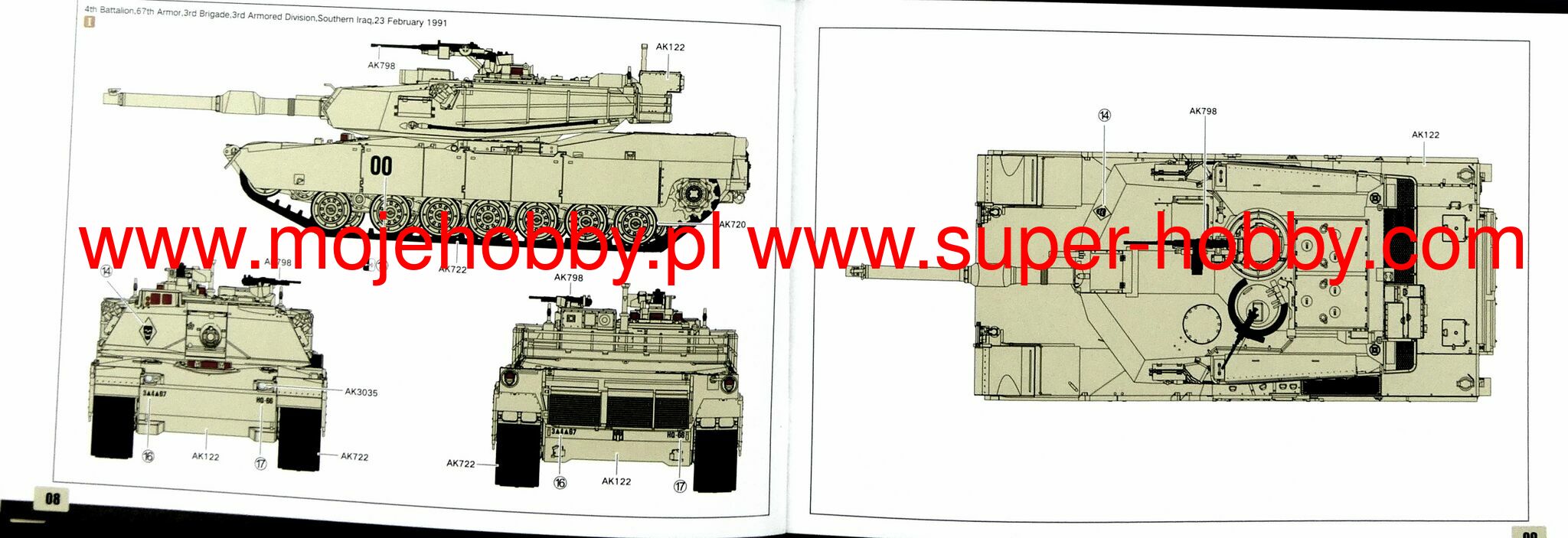 The M1 Abrams is a modern 3rd generation American Main Battle Tank. The first prototypes of the vehicle were created in the 1970s, and serial production started in 1979 continues to this day. To date (2018), about 10500 tanks of this type have been produced. The M1 Abrams is powered by a turbo-shaft (turbine) engine Avco Lycoming AGT-1500C 1500 hp. The vehicle is armed with a 105mm M68A1 tank gun in the M1 version, and a 120mm M256 tank gun in the M1A1 and later versions. The additional armament is 1 12.7 mm machine gun and 2 7.62 mm M240 machine guns. The M1 Abrams was created in response to the demand for a new Main Battle Tank announced by US Army already in the 60s of the twentieth century. The new vehicle was to replace the Patton family tanks (M47-M48-M60) in the US Army. Initially, cooperation with German companies was initiated in the project designated as MBT-70. However, after a few years, the cooperation was terminated and further work was focused only on American companies, especially in the Chrysler Defense concern. Despite a very long process of analytical, study and experimental work lasting almost 15 years, it was introduced to the line in the early 1980s M1 Abrams It turned out to be an almost revolutionary structure and far superior to the then Soviet ones. M1 Abrams It is primarily characterized by unprecedented - before 1979 - in tanks of this class, mobility and maneuverability, thanks to the use of a powerful 1500 HP engine. Another thing is that the choice of the turbine engine turned out to be not very successful because it requires very careful maintenance and is prone to catching fire. M1 Abrams it also has very good armor, using composites and SKO (fire control system). In the M1A1 version, it was also armed with a great 120mm gun. Several versions of the tank were created in the course of serial production M1 Abrams. The first significant improvements were made to the M1A1 version, the production of which was launched in 1985 - mainly by using a much more effective 120 caliber cannon instead of the 105mm gun. In 1992, the M1A2 version entered the line, with much richer electronic equipment than previous versions and armor using depleted uranium. Then came the M1A2 SEP version with even more perfect armor. The last development versions of the Abrams tank are the M1A2 SEPv2 and M1A2 SEPv3 versions, which have advanced information exchange, battlefield control, fire control systems and improved secondary weapon control systems. The M1 Abrams tank was exported to several countries, including: Saudi Arabia, Australia, Egypt and Kuwait. Vehicles of this type took part in several operations, the most important of which were the Gulf War in 1990-1991 and the Iraq War in 2003.