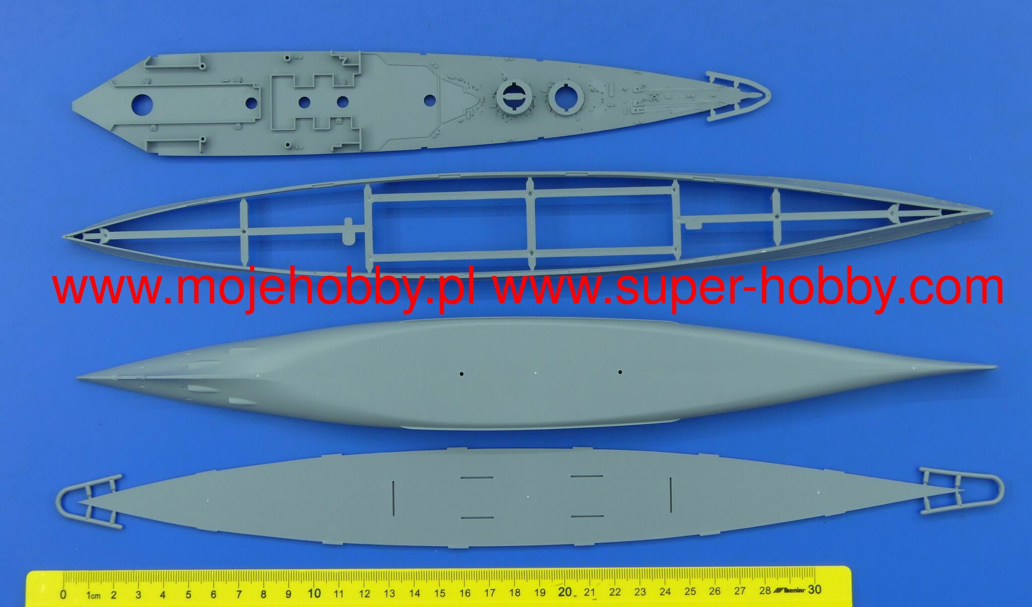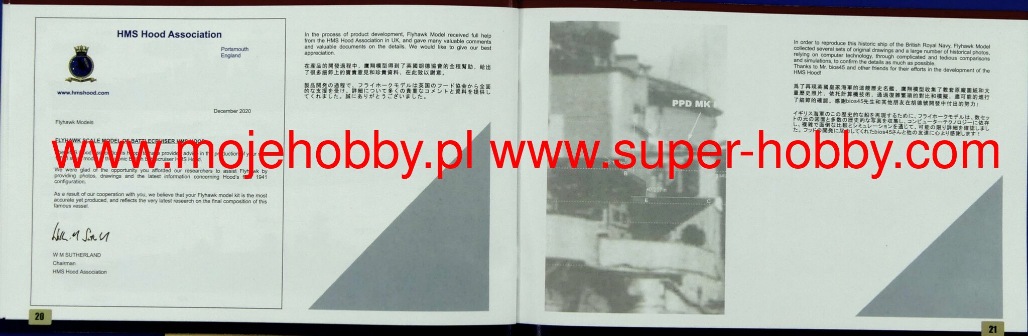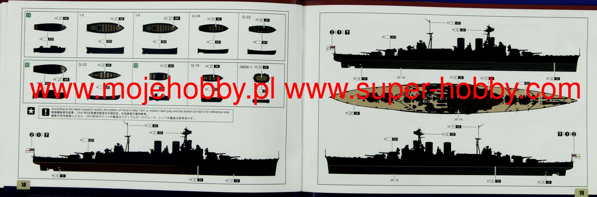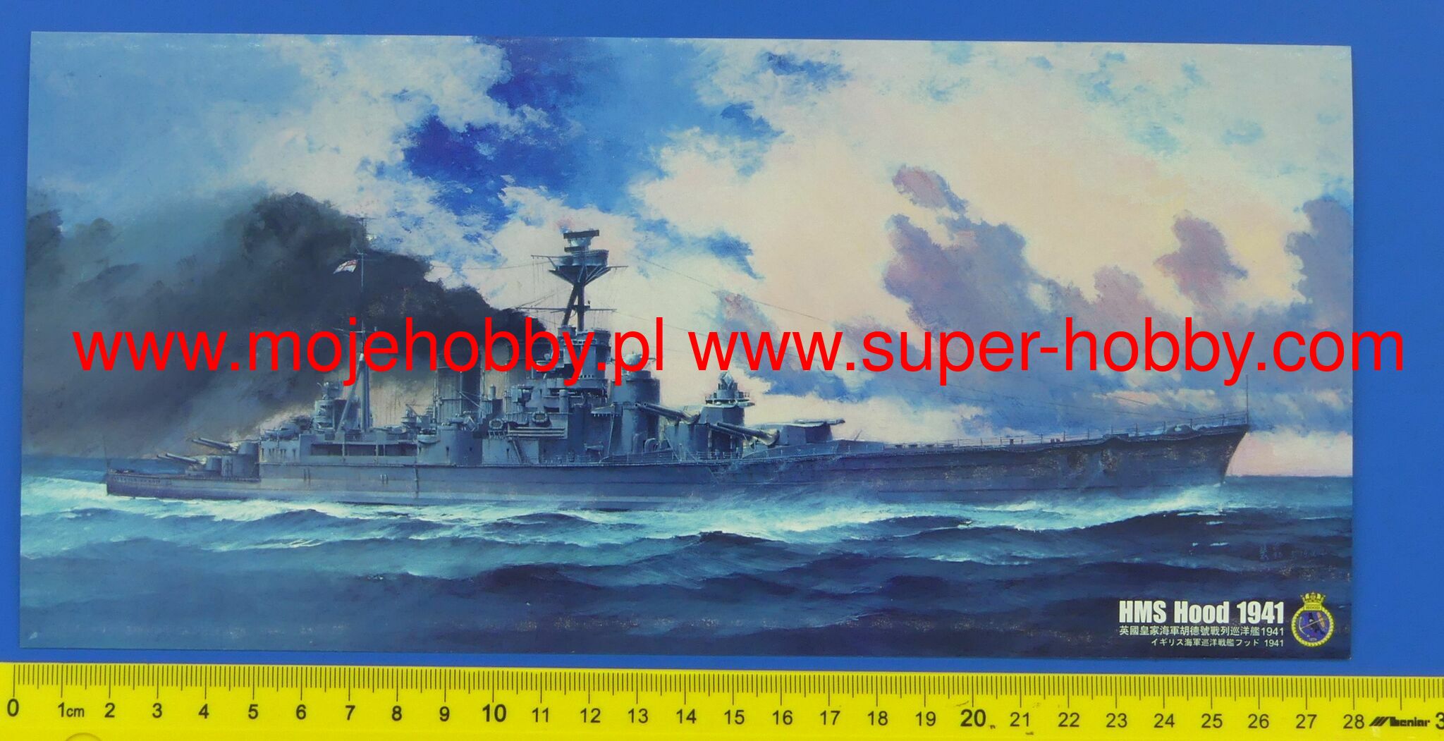 HMS Hood was a British battlecruiser, the keel of which was laid in 1916, launched in April 1918, and entered service with the Royal Navy in May 1920. The total length of the ship was 262 m, width 32 m, and her full displacement in 1941 - 48,400 tons. HMS Hood's top speed was around 28-32 knots. The main armament at the outbreak of World War II was eight 381 mm guns in four twin turrets. The secondary armament consists of 14 102 mm guns, 24 40 mm cannons and 4 533 mm torpedo tubes. HMS Hood was the only Admiral class ship to enter service with the Royal Navy. It was also the only line cruiser put into service after the end of World War I. What's more - throughout the interwar period it was the largest ship in the world, which was specially negotiated by British diplomats during the Washington Conference in 1921-1922. Despite her great size, HMS Hood had at the time of launching similar artillery armament as other line ships in the Royal Navy. However, it had much weaker armor, which was to be compensated for by considerable speed - which actually happened in the 1920s. However, at the outbreak of World War II, the German, Italian, and Japanese battleships were at least as fast as HMS Hood, but had much better armor. HMS Hood was built at the John Brown shipyard in Clydebank. From the moment she entered service, she was part of the British Atlantic Fleet, quickly becoming a kind of showcase of the Royal Navy, as the largest ship in the world. In the period from 1920 to 1939, he made numerous representative and occasional cruises - e.g. in the years 1924-1925 he made a cruise around the world. At the outbreak of World War II, he served in the North Atlantic, and in 1940 he was ferry to Gibraltar and took part in Operation Catapult, i.e. the destruction of the French navy at the base in Mers-el-Kebir. In May 1941, he was sent, with the battleship HMS Prince of Wales, against the German battleship Bismarck. During the clash with him in the Danish Strait, he was sunk on May 24, 1941.