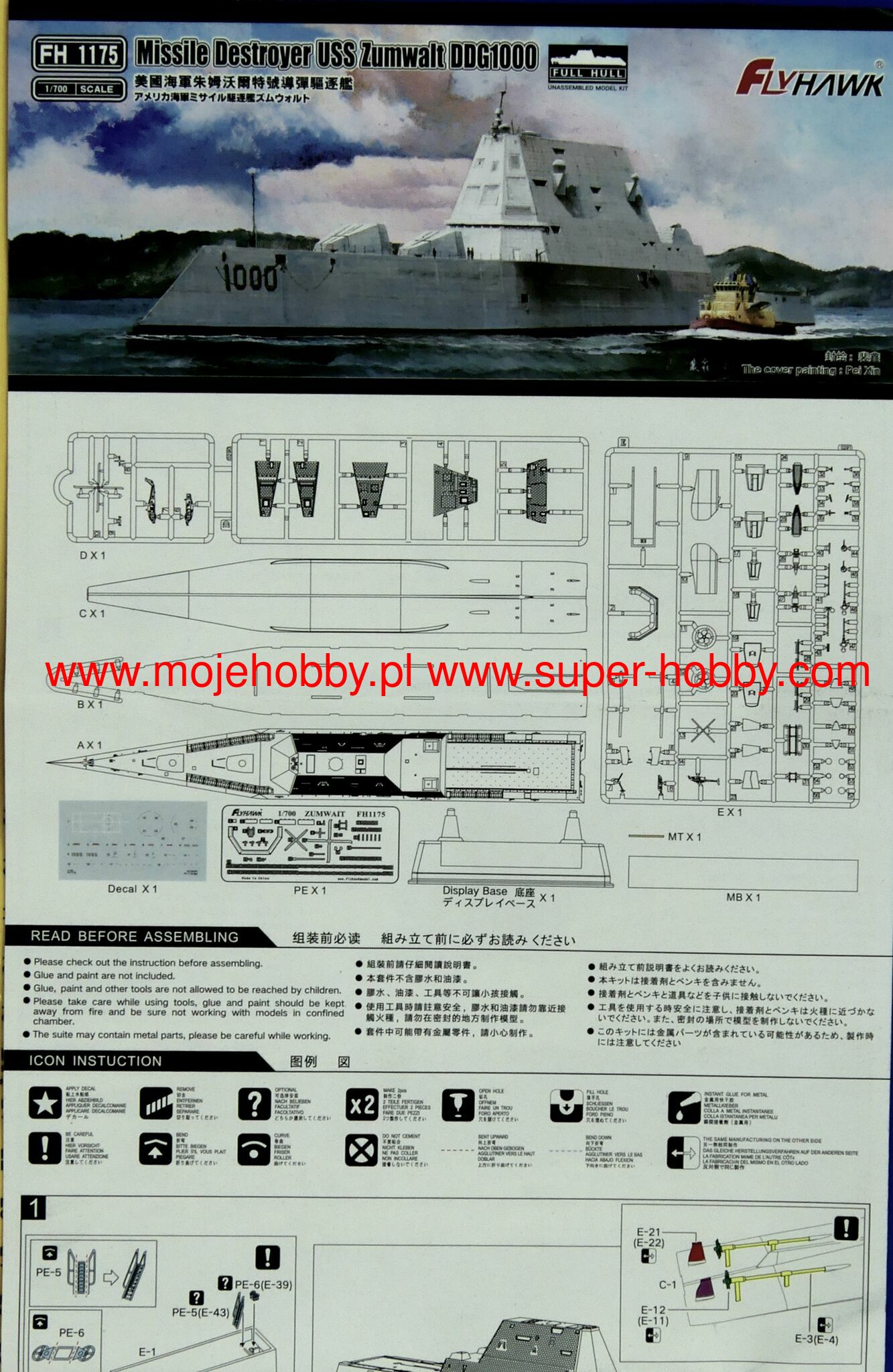 The USS Zumwalt (DDG-1000) is a next-generation American missile destroyer, possibly opening a completely new class of this type of vessel in the US Navy. The keel for this unit was laid in 2011, launched in 2013, and the ship entered service in October 2016. The ship is 183 meters long and 24.1 meters wide. Its displacement is about 14,000 tons. The propulsion is provided by diesel engines and two Rolls-Royce MT-30 gas turbines, cooperating with AIM electric motors, which give the ship a top speed of approx. 30-31 knots. The cost of building the ship is estimated at $ 3.5-4.4 billion according to 2014 prices. The USS Zumwalt (DDG-1000) is one of the most avant-garde and innovative maritime constructions of the beginning of the 21st century, which - perhaps - will pave the way for the development of US Navy surface ships. The ship's uniqueness comes from the very shape of the hull and superstructures, which have been largely subordinated to the requirements of stealth technology. The ship also has the so-called piercing bow of the hull, very rarely used on ships of this class. In addition, USS Zumwalt has a very efficient and generating significant excess power integrated power supply system, which - perhaps - will allow the installation of laser and / or energy weapons in the future. The ship also uses the very advanced AN / SPY-3 Dual-Band Radar (DBR). In its construction, composites were used on a very large scale and the so-called external rocket launchers and a completely new 155 mm deck gun (the so-called Advanced Gun System). Undoubtedly, the introduction of the USS Zumwalt means a significant technological progress in the US Navy in relation to the destroyer DDG-51 (Arleigh Burke class).