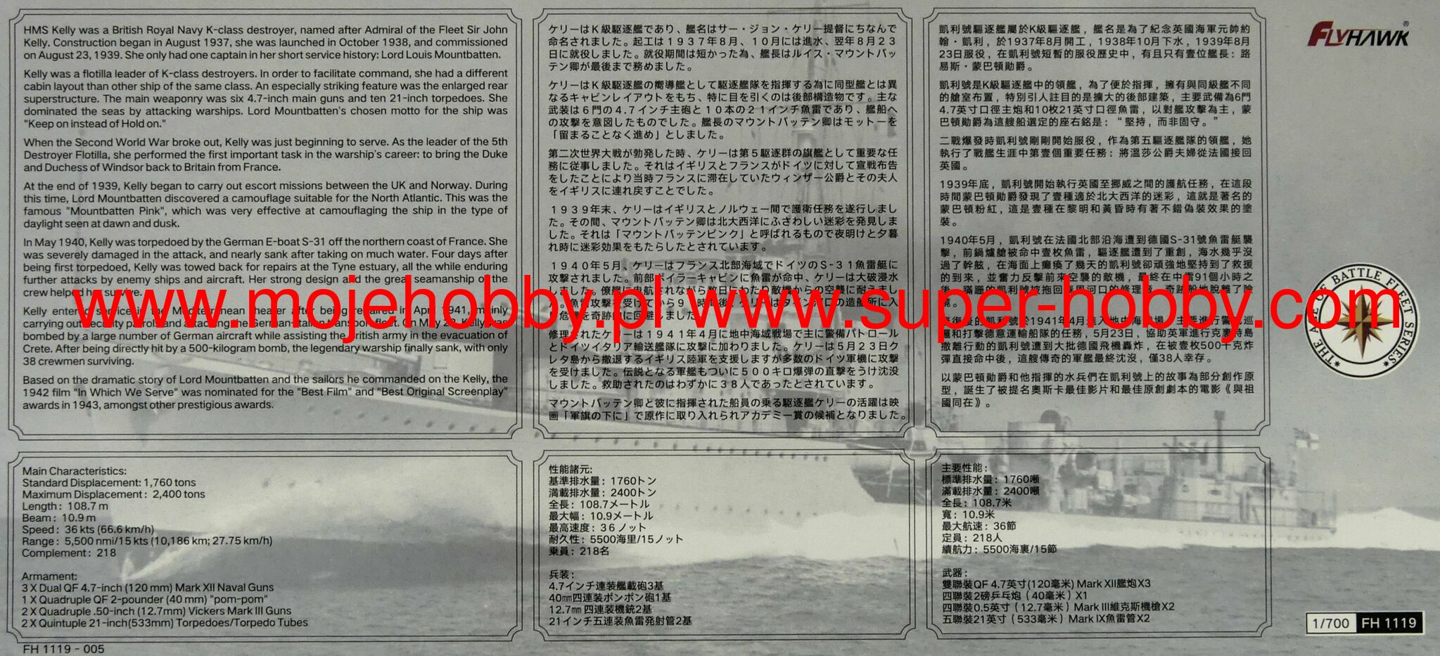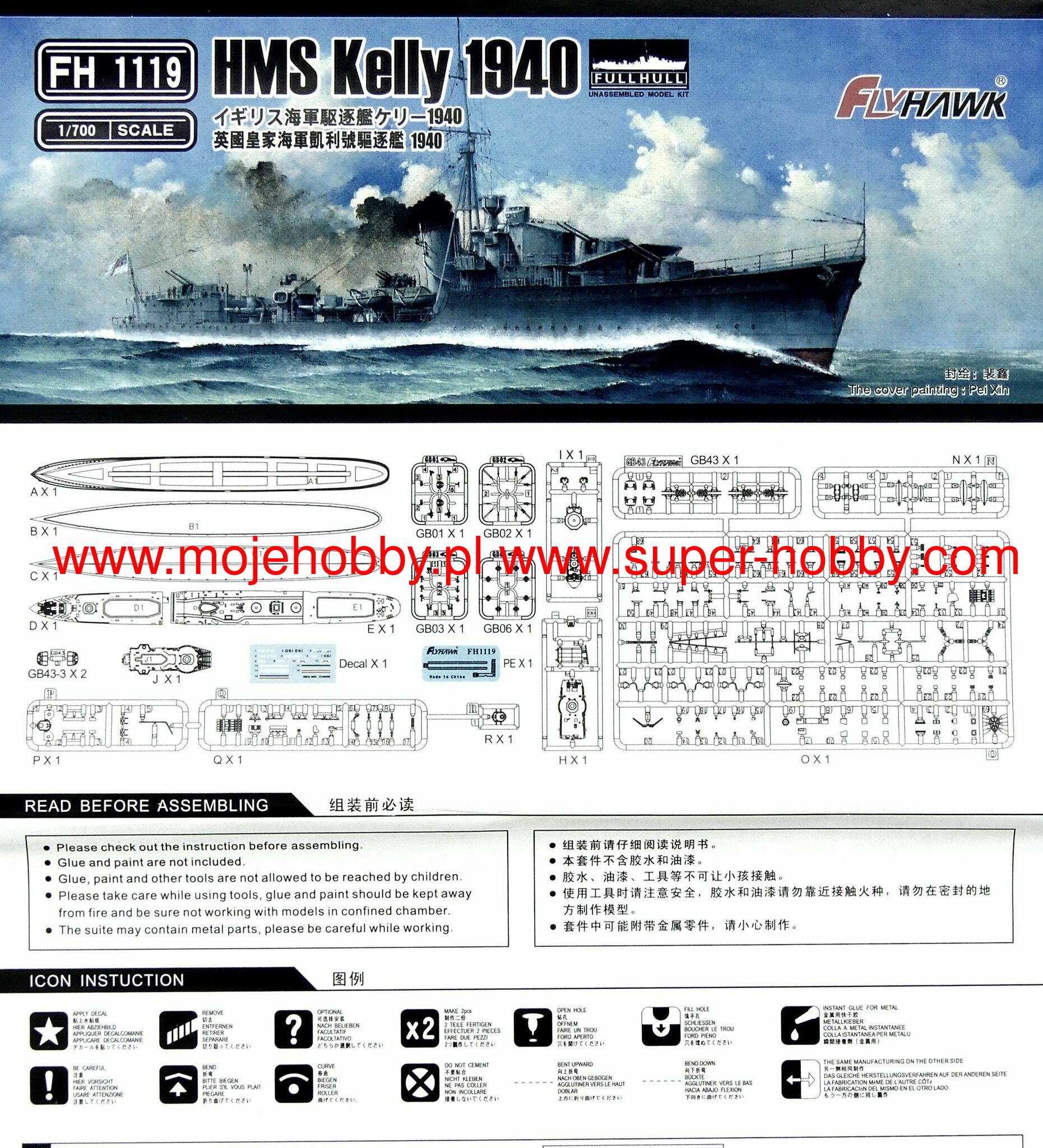 1119S HMS KELLY 1940 (DELUXE EDITION) fly hawk model 1/700