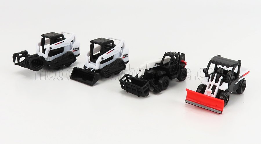 BOBCAT SET 2X S590 TRACTOR RUSPA CINGOLATA 2010 - SKID-STEER WITH FRONT LOADER SCRAPER + 5600 TOOLCAT PICK-UP 2010 SPAZZANEVE - SNOWPLOW + T40.180SLP TELESCOPIC ELEVATORE CON PIATTAFORMA CESTELLO TRACTOR (2010), WHITE BLACK