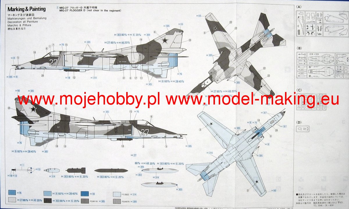 Mikojan-Guriewicz MIG-27 (NATO: Flogger) is nothing more than a developed version of the MIG-23 aircraft, having the nature of an assault machine. Successively developed variants of that aircraft gradually differed more and more from the original design, and finally the designation of the MIG-23BK model was replaced with a new one - MIG-27K. In addition to the K specification, three other MIG variants were produced 27: the M version, which is in fact a simplified K version, the D version - i.e. older machines rebuilt to the M standard, and the L version - produced under license in India, called there Bahadur, i.e. the Brave. A total of just over 1000 MIGs 27 were produced. The power unit was the Khachaturov R-29B-300 engine. Technical data: length: 17.2 m, wingspan (maximum): 13.97 m, height: 4.82 m, maximum speed: 1.6 Ma, climb speed: 200 m / s, maximum range: 2500 km, practical ceiling: 15 500 m, armament: fixed - one GSz-6-30 six-barrel 30mm cannon, suspended - up to 4000 kg of cargo.