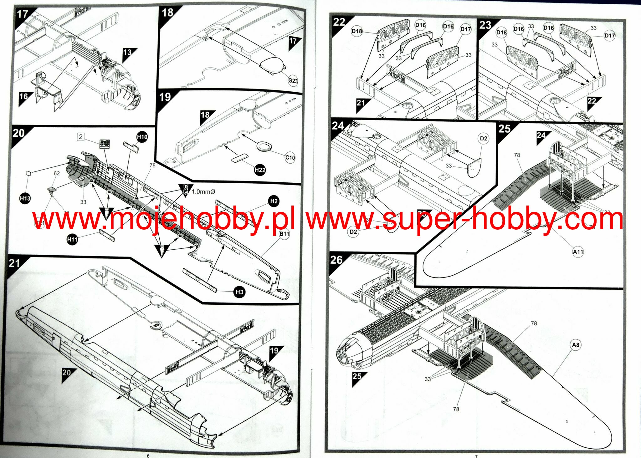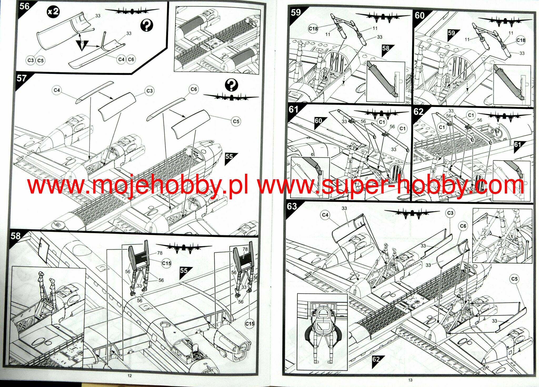 The Avro Lancaster is a British, four-engine, medium-wing metal structure strategic bomber from the Second World War. The prototype flight took place in January 1941 and mass production started in the same year. The basis for the creation of the Lancaster was the Avro Manchester plane. As a drive served min. four Rolls-Royce Merlin XX V-engines with a power of 1280 HP each (Mk.I) or Bristol Hercules VI engines with a power of 1737 HP each, although other engines were also used. Serial production took place at the Avro, Metropolitan-Vickers, Armstrong Whitworth, Vickers Armstrong and Victoria Aircraft plants and by the beginning of 1946, 7377 aircraft were produced. There were four main versions of the Avro Lancaster (Mk.I, Mk.II, Mk.III and Mk.X) that were externally similar to each other. The Avro Lancaster was the RAF's primary strategic bomber, and at the same time earned a reputation for being the best. It was easy to pilot, had high lifting capacity and was characterized by a long durability of the structure. It happened that the bomber was able to complete the mission and return to base, even despite the failure of one engine. The planes entered service in December 1941 and served at the end of the war, primarily performing strategic bombing tasks. It was the Lancasters of the RAF 617 Bomber Squadron that were used in May 1943 to damage the Ruhr water dams. Technical data (Mk.I version): length: 21.11m, wingspan: 31.09m, height: 6.25m, maximum speed: 456km / h, maximum range: 4073km, maximum ceiling 6500m, armament: fixed - 8 rifles 7.7mm Browning machine guns, mounted - up to 6300 kg of bombs or one Grand Slam bomb (10000 kg) after modifying the bomb chamber.