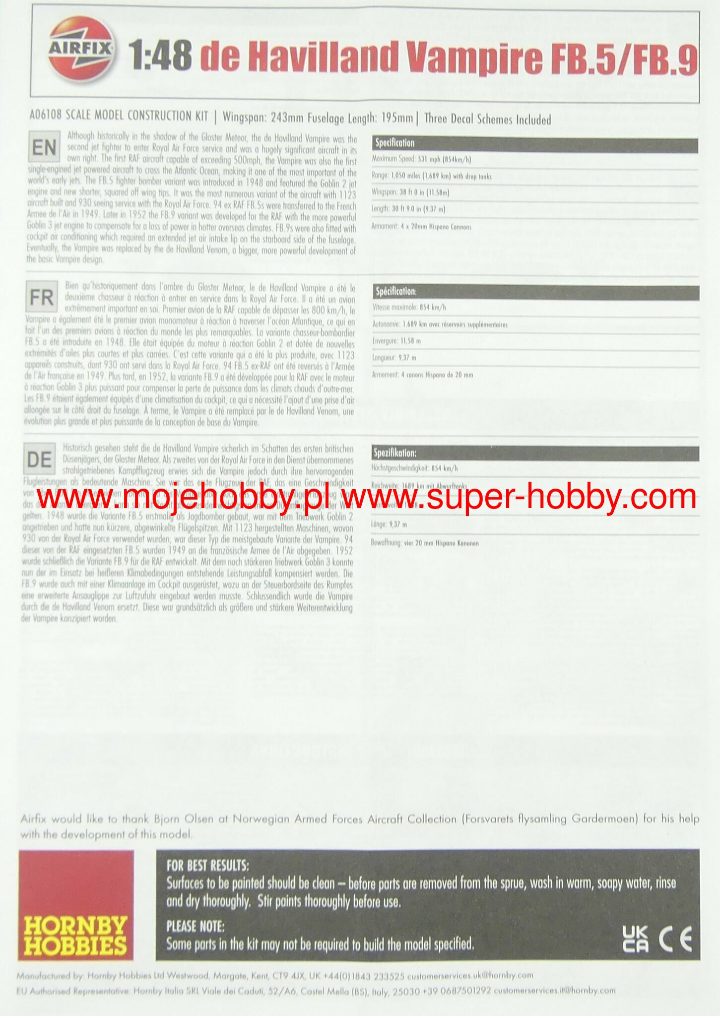 DE HAVILLAND VAMPIRE FB.5/FB.9 airfix 1/48