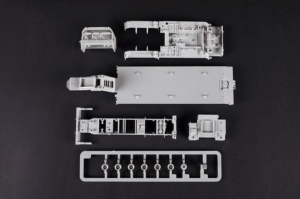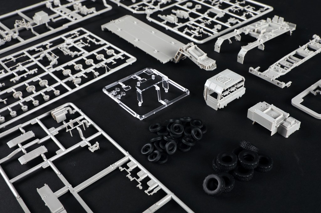 Описание Faun SLT-56 немецкий тяжелый колесный тягач. Первые экземпляры этой машины появились во второй половине 1980-х годов, а в 1989 году Бундесвер принял решение о закупке 49 таких тягачей. Faun SLT-56 был разработан для нужд Бундесвера для перевозки ОБТ Leopard 2. Новый тягач также является преемником ранее использовавшейся машины SLT-50 и, несмотря на внешнее сходство, отличается от нее по многим параметрам. Всего деталей более 150 Всего литников 7, включая кабину, раму, шасси и шины