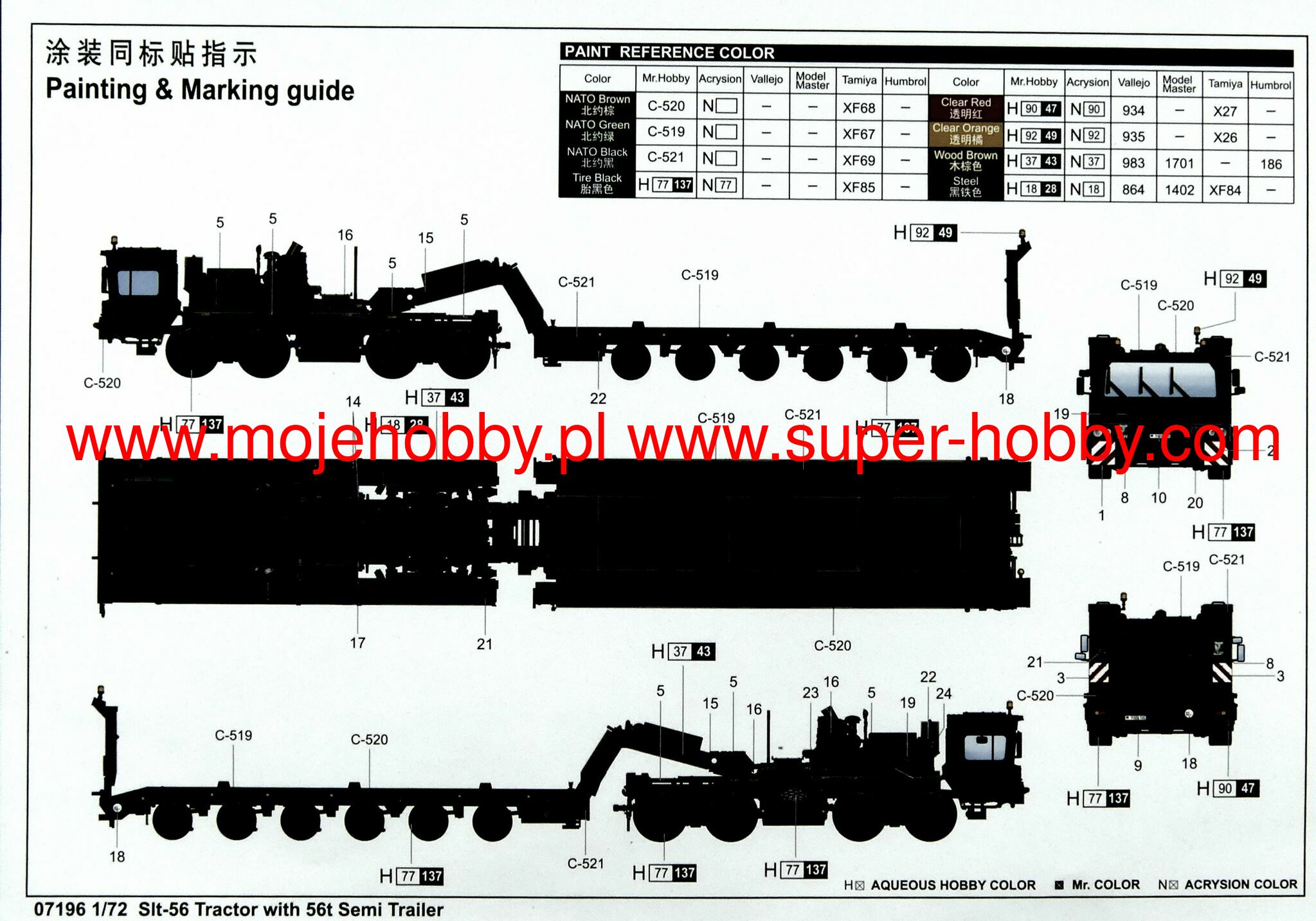 Купить 07196 ТЕХНИКА И ВООРУЖЕНИЕ SLT-56 TRACTOR WITH 56T SEMI TRAILER (1/72)