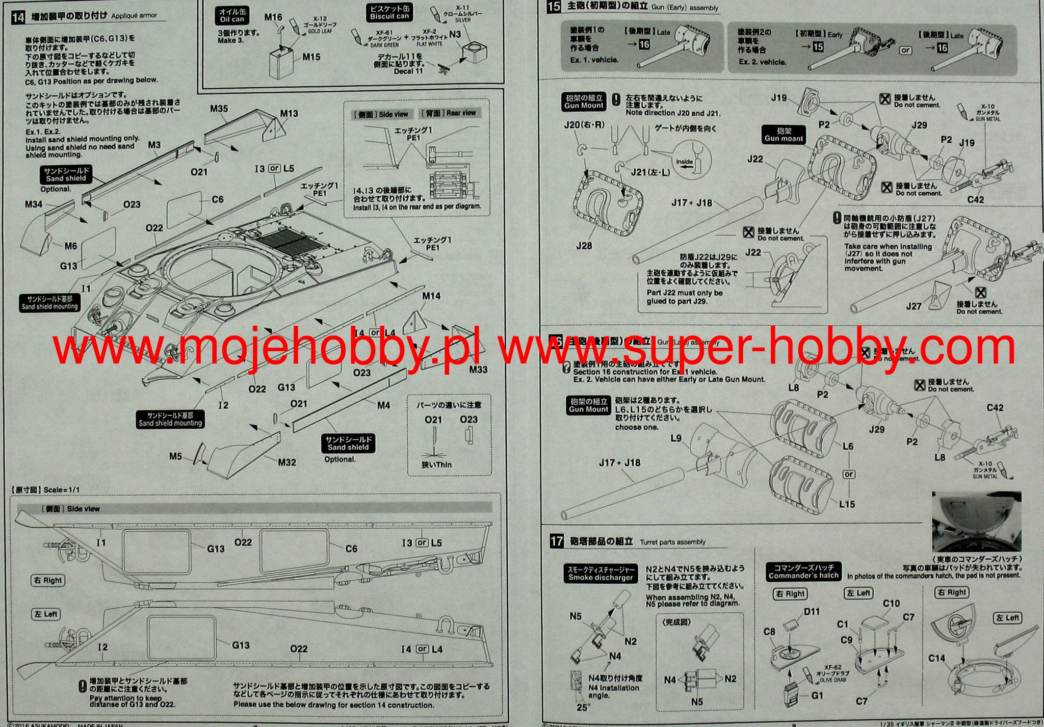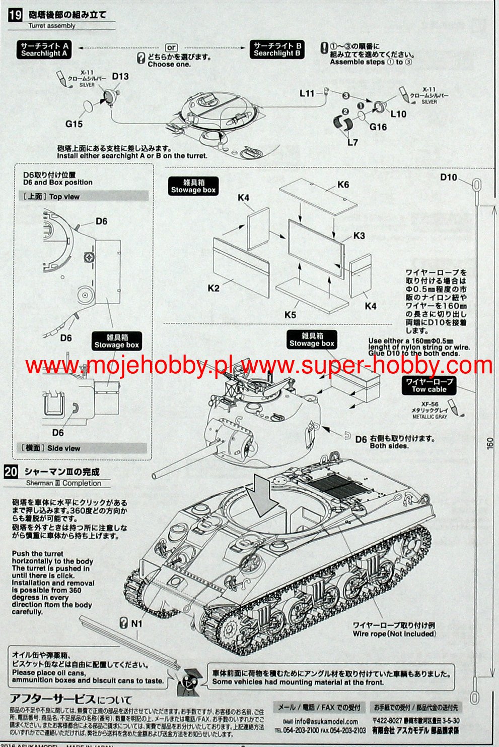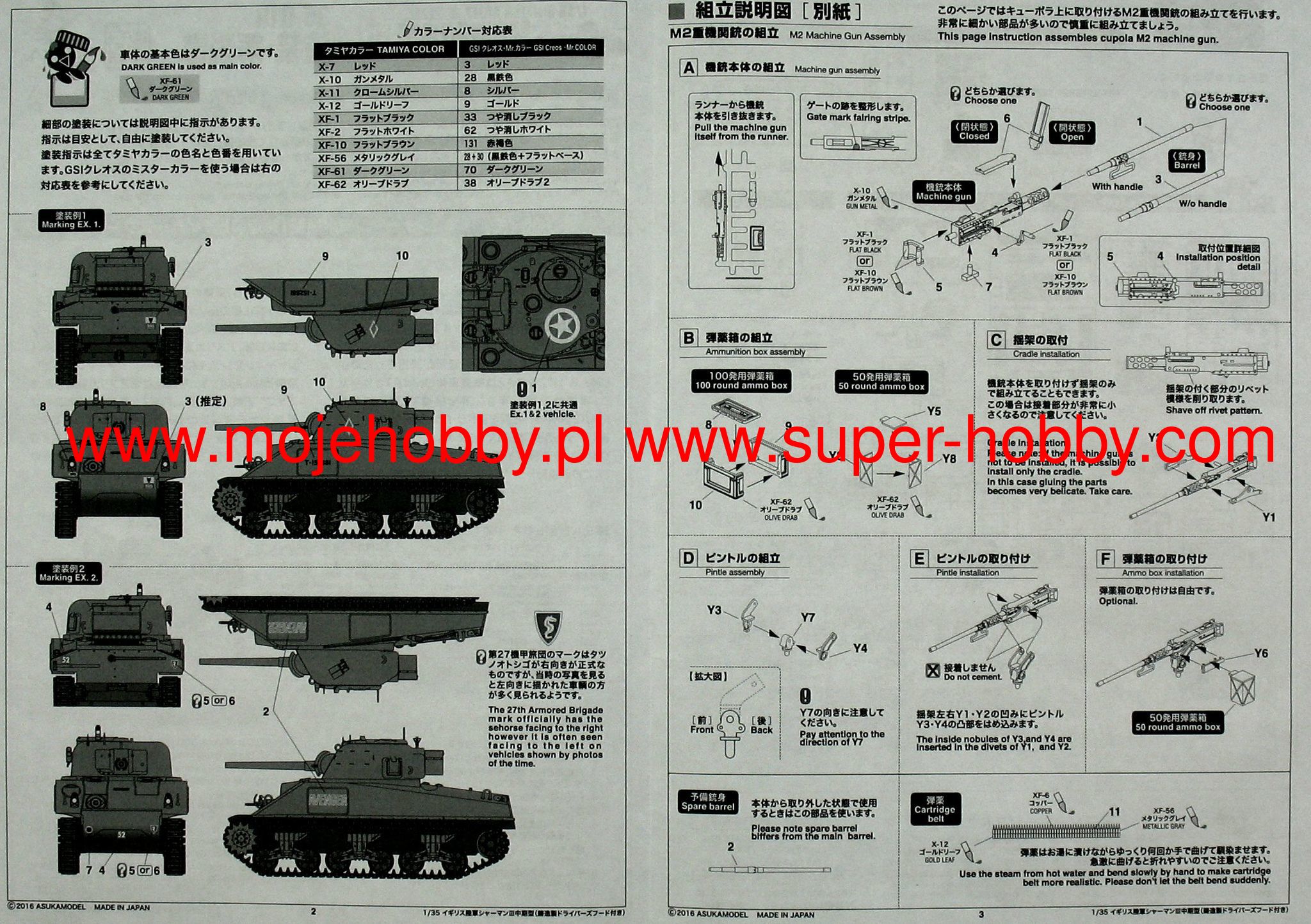 The M4 Sherman was an American medium tank from the Second World War. The first prototypes were built in 1941, and serial production was carried out in the period 1942-1945. In total, about 49,000 copies of this tank of all versions were created, which makes it one of the most produced tanks of the Second World War and the most important tank in the equipment of the Allied armies during this conflict. The M4 Sherman was powered by a single engine version of the M4A1 Continental R 975 C4 with a power of 400 hp . The vehicle was armed with - depending on the version - a single 75mm M3 cannon or a 76mm M1 cannon or a 105mm M4 howitzer and two 7.62mm Browning1919A machine guns. The M4 Sherman was developed as the successor to the M2 and M3 tanks, although it used many of the latter's components. First of all, it only used a slightly changed chassis of the M3 Lee car. When designing the M4 Sherman, the emphasis was primarily on playing the role of an infantry support vehicle, and not fighting enemy tanks - this was the role of American tank destroyers. Only possible clashes with the carts were assumed Pz.Kpfw III and Pz.Kpfw IV. A significant role was also played in the mass production of the new tank and the lowest possible production costs. The result was a tank with good armament for 1942 and early 1943, average armor, but with a tilted front plate, but also with poor maneuverability and - especially in the first versions - very susceptible to fire as a result of hitting the engine compartment . At the same time, however, a tank was created that could be truly large-scale production and had a significant modernization potential. Many development versions were created in the course of serial production M4 Sherman. Chronologically the first was the M4A1 version that already had a cast armor. Another - M4A2 - had welded armor and a new General Motors 6460 engine with 375-410hp, but much less prone to fire. A version of the M4A3 also appeared, armed with a 105 mm howitzer and powered by a Ford GAA engine with a capacity of 450 HP. Based on the M4A3 version, two sub-versions were created: the M4A3E2 Jumbo with reinforced armor and the M4A3E8 with the HVSS and 76mm gun. An interesting development version was also the T34 Calliope with mounted missiles not guided on the turret. The M4 Sherman was also supplied in huge numbers to the British and Red Army. The former developed a version of the Firefly based on it, with a great 17-pounder anti-tank gun. During World War II, M4 Sherman tanks fought in North Africa (1942-1943), Italy (1943-1945), during the battles in Normandy, France and West Germany (1944-1945), but also in the Pacific or in the ranks The Red Army on the Eastern Front. After World War II, the M4 Sherman was used in many countries, including Argentina, Belgium, India, Israel, Japan, Pakistan and Turkey. He also took part in many post-1945 conflicts, including the Indo-Pakistani War of 1965 and the Six-Day War of 1967.