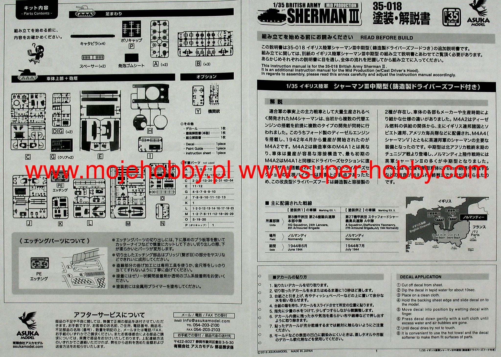 35-018 BRITISH ARMY SHERMAN 3 MID PRODUCTION (WITH CAST DRIVERS HOOD) asuka 1/35