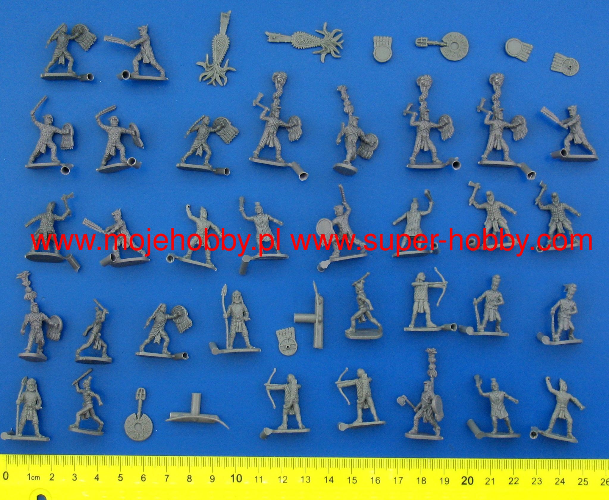 The Aztecs (another name: Mexicans) were originally a tribe that arrived in what is now northern Mexico around 1300 and which in a relatively short time created a very strong state with a high level of civilization and cultural development. It is worth adding that some researchers today call the Aztecs "the Indian nation". The capital of the Aztec state was called Tenochtitlan, and their state - if European names were used for it - could be called a relatively loose confederation of many Indian tribes subordinate to Tenochtitlan. The war in Aztec culture played a huge role. It was led not only for the purpose of plunder or conquest, but also for the purpose of capturing prisoners who would later be sacrificed to the gods. It was also assumed that the Aztec ruler should always be a talented and the best possible commander. It can be assumed that the Aztec armed forces were divided into two parts: calpolli and calpoleque. It is also worth adding that men from the Aztec social elite were members of "military societies" (sometimes called orders), which constituted a kind of army elite, and their warriors were very well trained and had a very high morale. Among them were soldiers called warrior-jaguar or warrior-eagle in Polish. The defensive armament of the Aztec warrior was relatively weak - it consisted mainly of a helmet and a shield made of wood and leather, and often also bird feathers. The armor was worn primarily by members "Military societies". In the case of the jaguar fighter, the armor was specially prepared skin of this wild cat. The offensive weapons used were spears, javelins, but most of all various types of hand-to-hand combat weapons - primarily macuahuitl , which is a kind of short sword with an obsidian blade. It is worth adding that the Aztecs also conducted the so-called flower wars (xochiyaoyotl, ang. Flower War), or wars of limited range, in a predetermined place and time, and the forces of both sides, which were primarily aimed at capturing prisoners for sacrifices to the gods.