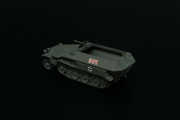 Sd.Kfz 251 was a German, medium, half-track armored transport from the Second World War. The first prototypes of the vehicle were made in 1935, and serial production continued in 1939-1945, ending with the production of about 14,500 units. The Sd.Kfz 251 was powered by a six-cylinder engine Maybach HL 42 TURKM with 100 hp . Sd.Kfz 251 was developed as a new, basic half-tracked transporter of the German armed forces. Its design was based on the Sd.Kfz.11 heavy tractor, with several elements changed in the adapted chassis: a new fuel tank was added, the location of the steering wheel, and the exhaust system was redesigned. In the course of serial production, four basic versions of the Sd.Kfz 251 (Ausf. A, B, C and D) were created, however, in terms of details related to the production process (especially the C version) and a slightly different arrangement of elements inside the fuselage. During World War II, more than 20 variants and versions of the Sd.Kfz 251 were created. The chronological first was the Sd.Kfz 251/1, which was the basic version, armed with two MG34 or MG42 machine guns and capable of carrying up to 10 landing troops. In 1941, a version of the Sd.Kfz 251/2 was developed, armed with an 80 mm mortar. There was also a version of the Sd.Kfz 251/3, which was a communication and radio communication vehicle with various sets of radio stations and antennas. In 1942, the Sd.Kfz 251/9 Stummel variant was developed, armed with a 75mm StuK 37 short-barrel gun. More interesting versions were the Sd.Kfz 251/16 with two flamethrowers or the Sd.Kfz 251/20 UHU equipped with an infrared radiation emitter and intended for targeting at night. Cars Sd.Kfz 251 of all versions served primarily in armored divisions and armored grenadiers on virtually all fronts of World War II: from the September campaign (1939), through the campaign in France (1940), fighting in the Balkans and North Africa (1941-1943) after fights on the Eastern (1941-1945) and Western (1944-1945) fronts.