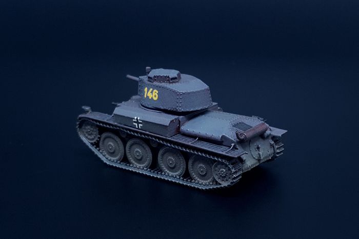 LT vz. 38 or Panzerkampfwagen 38 (t) was originally a Czechoslovakian and later a German light tank from World War II. The first prototypes of the vehicle were created in 1938, and serial production continued in the period 1938-1942, ending with the production of about 1,400 vehicles. The tank was powered by a single Prague EPA engine with 125 HP. It was armed with one 37.2 mm KwK 38 (t) L / 47 gun and two 7.92 mm MG 37 (t) machine guns. The CKD factory in Czechoslovakia produced the LT vz.35 tank from 1935, which was sold to the domestic army, but which - as it turned out in the course of its operation - had a number of disadvantages that made it impossible to succeed on foreign markets. Hence the initiative of the CKD company, which decided to develop the LT vz. 38. The new vehicle turned out to be a much better design than its predecessor, which resulted in orders placed by Peru, Iran, Switzerland and the Czechoslovak army. LT vz. 38 after Czechoslovakia was taken over by the Third Reich, it was taken over by the Wehrmacht under the name of Panzerkampfwagen 38 (t), and its production continued. The tank took part in the September campaign in 1939, in the French campaign in 1940 and in the initial period of the war with the USSR. From the second half of 1941, however, it was withdrawn from service due to too weak armor and low susceptibility to modernization. Based on the Panzerkampfwagen 38 (t) chassis, a tank destroyer named Hetzer was created.