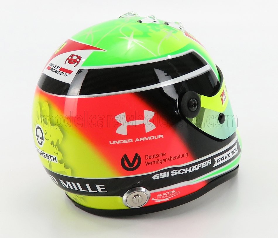 SCHUBERTH HELMET F2 CASCO HELMET DALLARA TEAM PREMA RACING N 20 SEASON MICK SCHUMACHER (2020) F2 WORLD CHAMPION, YELLOW GREEN RED BLACK
