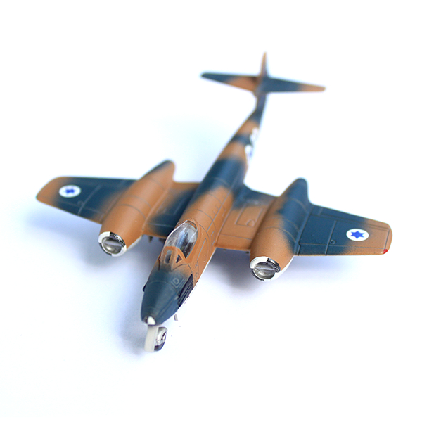 The Gloster Meteor is a British single-seater, twin-engine, full-metal fighter jet from the end of World War II. The flight of the prototype took place on March 5, 1943, and the machine began to hit the linear units in the summer of 1944. The 616 squadron RAF was the first to receive aircraft. George Carter was in charge of the entire project. The prototypes used the de Havilland Halford H.1 engine, but the series aircraft used Rolls-Royce Derwent I engines. The Meteor was the first mass-produced Allied jet fighter and the second in the world - after the Me262. During World War II, it was used primarily to combat V1 flying bombs. It is worth noting that in the course of the hostilities, there was never a single air fight between a Meteor and any German plane, despite the fact that on the ground the Gloster company annihilated about 40 enemy machines. The plane was also heavily used after 1945, especially by Australian troops during the Korean War. In total, a dozen or so versions of this machine were created, the most widely produced of which are: F.3 and F.4 (fighter-bomber versions from World War II), T.7 (two-person, training version, created in 1948), F. 8 (improved version of the F.4, in service from 1950). Technical data: length: 13.59m, wingspan: 11.32m, height: 3.96m, maximum speed: 965km / h, climb speed: 35.6m / s, maximum range: 965km, maximum ceiling 13,100m, armament: permanent - 4 20mm Hispano cannons, sling - up to 908 kg of bombs or unguided rockets.