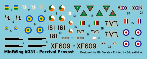 PERCIVAL PROVOST T.1/T.53 (2 PLASTIC KITS IN BOX - 4 DECAL VERSIONS) miniwing 1/144