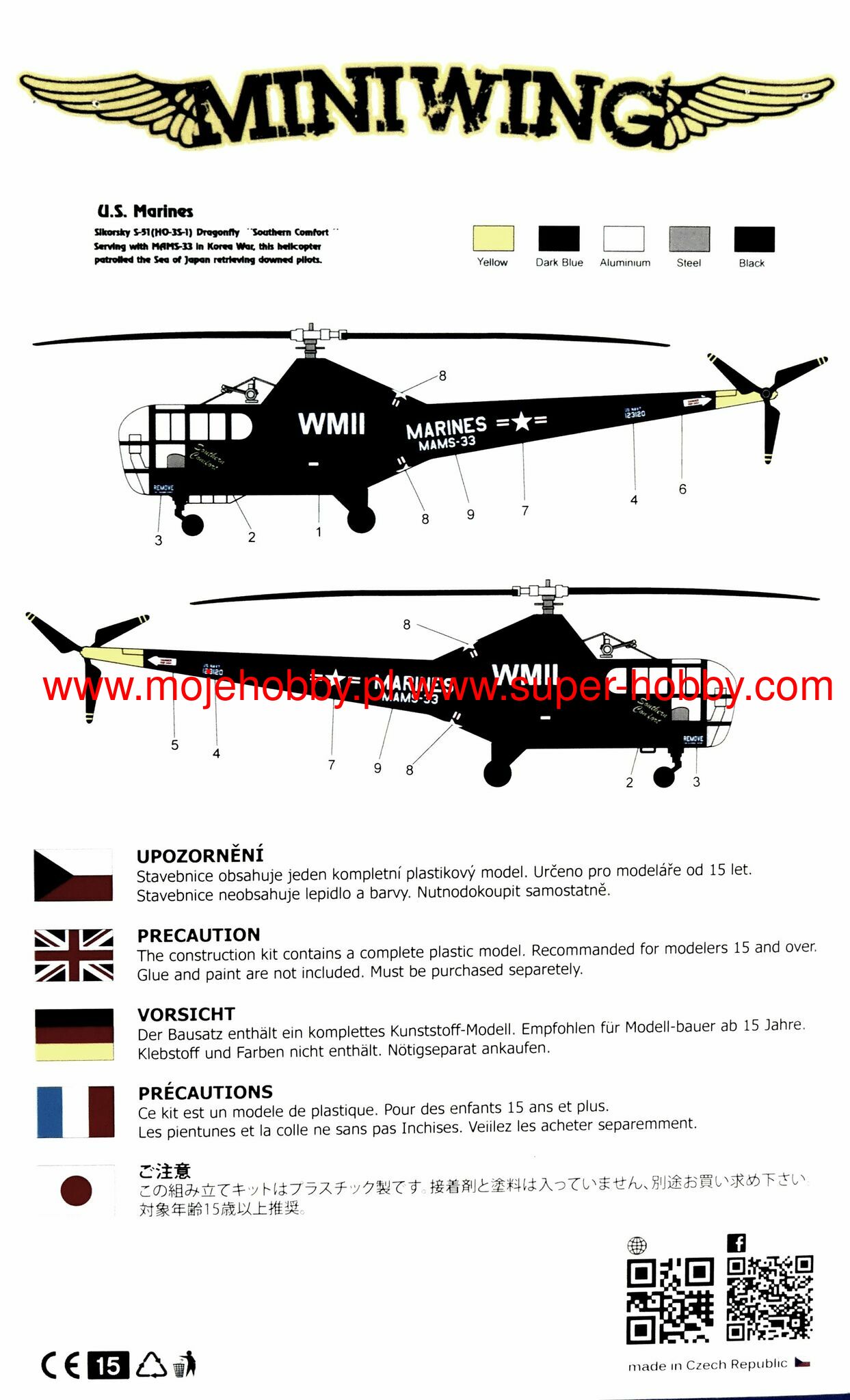 SIKORSKY HO-3S-1 DRAGONFLY USMC (1 KIT IN BAG WITH CANOPY PAINT MASK)