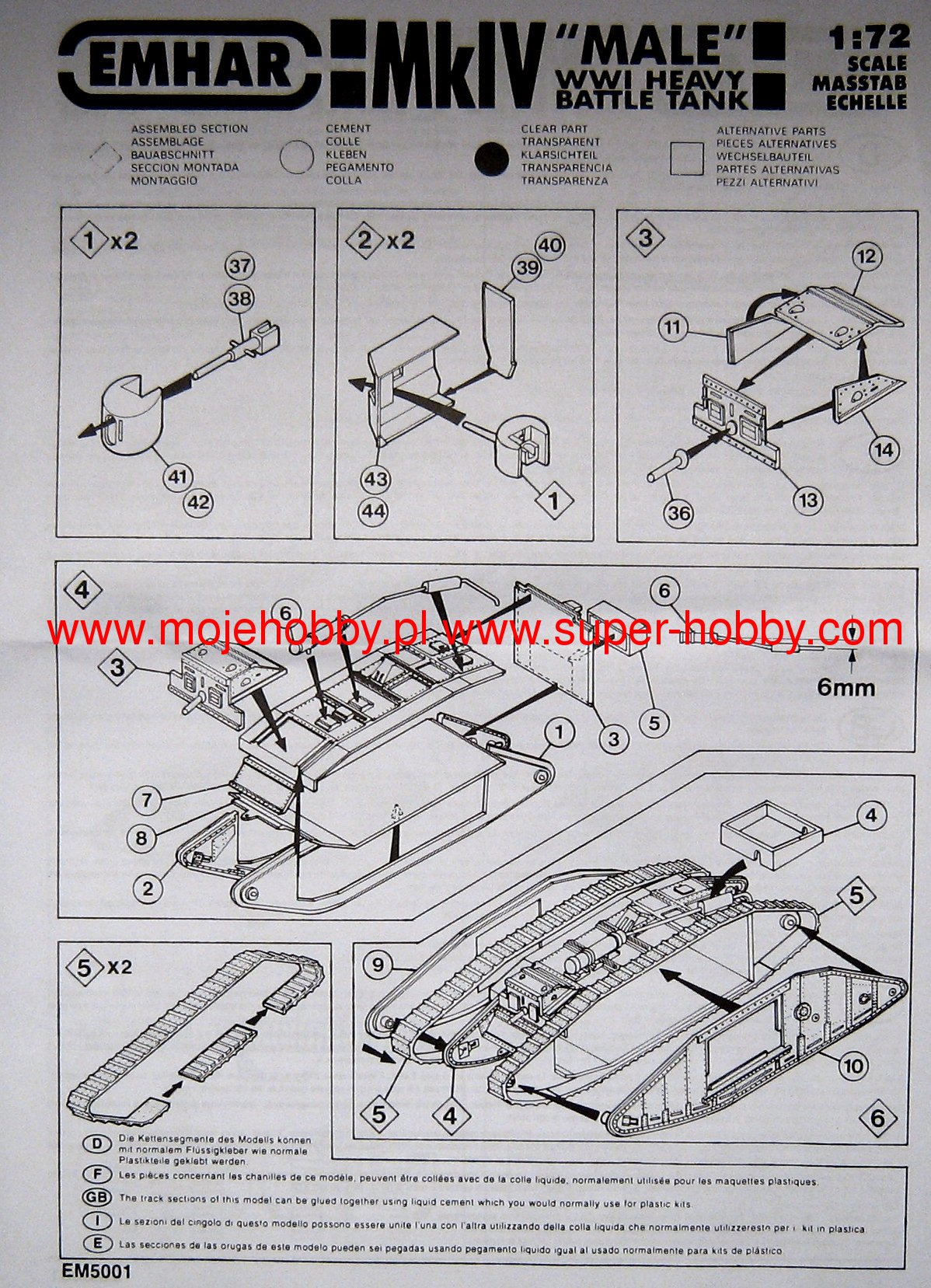 The Mark I tank is a British tank, often classified as a WW1 heavy tank. The first prototypes of this car appeared in 1916, and serial production started in the same year. The car was powered by a single carburettor engine with a capacity of up to 105 HP. The length of the vehicle was 7.93 meters with a total width of 4.19 meters. The armament of the vehicle (in the so-called Male version) consisted of two 57 mm cannons and three machine guns, while the so-called female version - five machine guns. The Mark I tank was the first British tank of the Great War to be used extensively and the first tank used in combat in history! It was developed on the basis of the assumptions and conclusions drawn from the operation of the prototype Little Willie tank. At the same time, however, it clearly differed from it in the location of the tracks or the shape of the hull, although it was powered by the same engine. The Mark I tank also introduced a rhomboidal shape typical of British tanks of 1916-1918. The vehicle did not have a turret, and all the armament was mounted on sponsons on the sides of the tank. The Mark I was first used in combat in September 1916 at the Battle of the Somme.The Mark V tank is a British tank, often classified as a WW1 heavy tank. The first prototypes of this car appeared at the end of 1917, and serial production started at the turn of 1917-1918. As a result, about 400 tanks of this type were created. The car was powered by a single Ricard engine with a capacity of up to 150 HP, and its weight reached 30 tons. The armament of the vehicle (in the so-called Male version) consisted of two 57 mm cannons and three machine guns, while the so-called female version - five machine guns. The so-called Composite (or Hermaphrodites) version armed with a single 57mm cannon and four machine guns. The Mark V was developed on the basis of the Mark IV tank. From its predecessor, it took over the main design assumptions, such as the diamond shape of the hull and tracks, the lack of a turret with armament and its placement in sponsons on the sides of the wagon. However, it received a new drive unit and, what is equally important, a different drive train and a track turning mechanism. There was also an observation tower for the commander of the car. The tank was also much more mechanically refined than its predecessor, and its armor thickness varied from 6 to 14 millimeters. Mark V tanks were used in combat for the first time at the Battle of Hamel in July 1918. They were also used extensively at the Battle of Amiens in August 1918. Interestingly, they were definitely withdrawn from the British Army only in the early 1930s!The Mark II tank is a British tank, often classified as a WW1 heavy tank. The first prototypes of this car appeared in 1916, and serial production continued at the turn of 1916-1917. As a result, 50 tanks of this type were created. The car was powered by a single carburetor engine with the power of 105 HP, and its weight ranged from 27 to 28 tons. The armament of the vehicle (in the so-called Male version) consisted of two 57 mm cannons and three 8 mm Hotchkiss machine guns, while the so-called Female version - five machine guns, including one 8mm Hotchkiss and four 7.7mm Vickers. The Mark II was developed on the basis of the Mark I tank. From its predecessor, it adopted the main design assumptions, such as the diamond shape of the hull and tracks, the lack of a turret with armament and its placement in sponsons on the sides of the vehicle. At the same time, from the very beginning, it was assumed that the Mark II would be primarily intended for training tasks, as well as introducing numerous, though rather minor, mechanical improvements resulting from the use of Mark I vehicles. The training courses were used in the Battle of Arras in April and May 1917, but suffered heavy losses.The Mark IV tank is a British tank, often classified as a WW1 heavy tank. The first prototypes of this car appeared in 1917, and serial production continued in 1917-1918. As a result, about 1,220 tanks of this type were created. The car was powered by a single Daimler-Foster engine up to 105 HP, and its weight ranged from 27 to 29 tons. The armament of the vehicle (in the so-called Male version) consisted of two 57 mm caliber cannons and three 7.7 mm Lewis machine guns, while the so-called the female version - five 7.7 mm Lewis machine guns. The Mark IV was developed on the basis of the Mark I tank. From its predecessor, it adopted the main design assumptions, such as the diamond shape of the hull and tracks, the lack of a turret with armament and its placement in sponsons on the sides of the vehicle. The main modernization concerned a significant reinforcement of the armor and the placement of the fuel tank in a different part of the vehicle. The car was also generally more mechanically efficient and less reliable than its predecessor. Some vehicles of this type were also equipped with radio stations and mortars. It is also worth adding that the production of Mark IV tanks was several times greater than that of Mark I vehicles, which meant that it was divided between six production plants, with the main producer being the Metropolitan plant. Mark IV tanks were used in combat for the first time during the Battle of Messines in the summer of 1917.