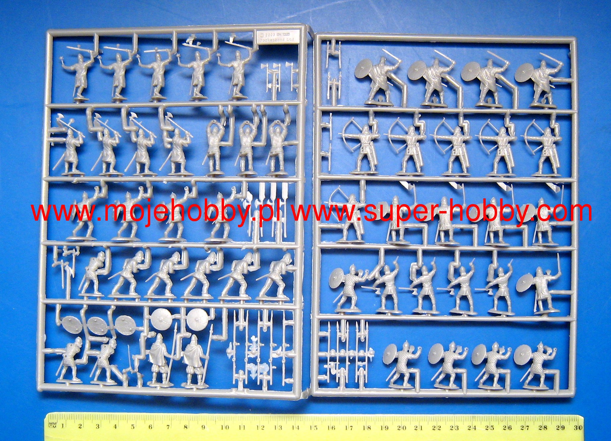 The Vikings are a Scandinavian people who, from the end of the 8th century, made numerous invasions and plundering expeditions in eastern, western and southern Europe. Vikings reached the area of today's Baltic countries, Russia, Great Britain, France, Spain, Italy, but also the medieval Caliphate of Baghdad! It is assumed that the period of increased expansion and Viking invasions took place from around 800 to around 1050. It is also assumed that they made the first invasion of Western Europe in 793, and the target of their attack was the Lindisfarne monastery in England. The Vikings achieved their successes primarily by acting by surprise, relying on their height of mobility and the great possibilities offered by their long boats - the drakkaras. In the field, they most often used the tactic known as a shield wall. Their battle zeal, courage and good melee fighting skills have gone down in legend. Most often they used as offensive weapons, a spear, an ax and a one-handed double-edged sword. Throwing weapons, especially bows, were used as additional weapons. The main defensive weapon is a nasal helmet or the so-called eyepiece and a round target. It is worth adding that the Byzantine emperors, appreciating the combat value of the Vikings, took them on their pay as the so-called Wareska guard. On the other hand, in Ruthenia, the Varangians were the progenitors of the Rurykowicz dynasty that ruled until the 16th century. It is a complete misunderstanding to attribute "mass" use of helmets with horns to Vikings - this is an invention from the 19th / 20th century, not finding any coverage in the sources.