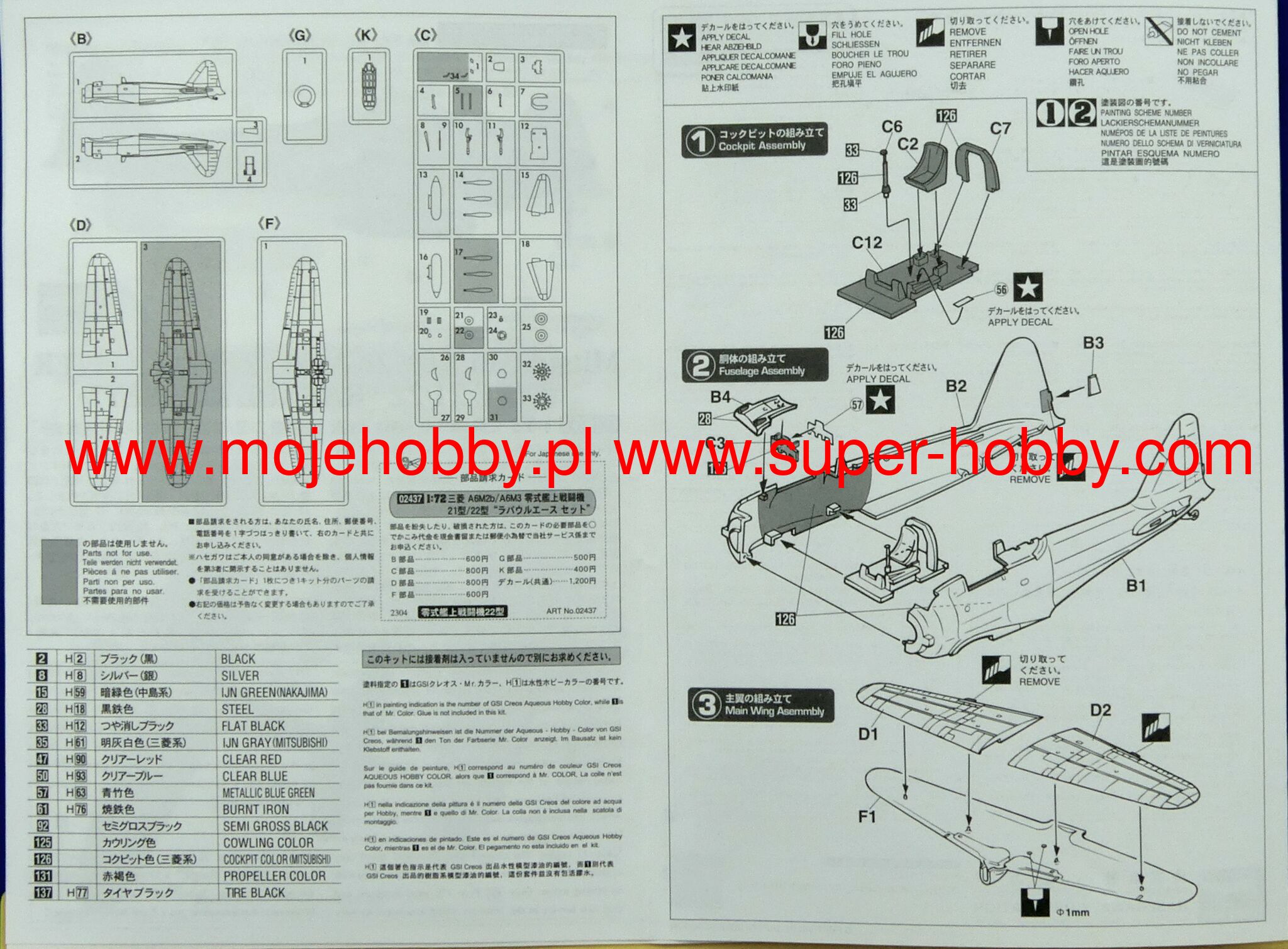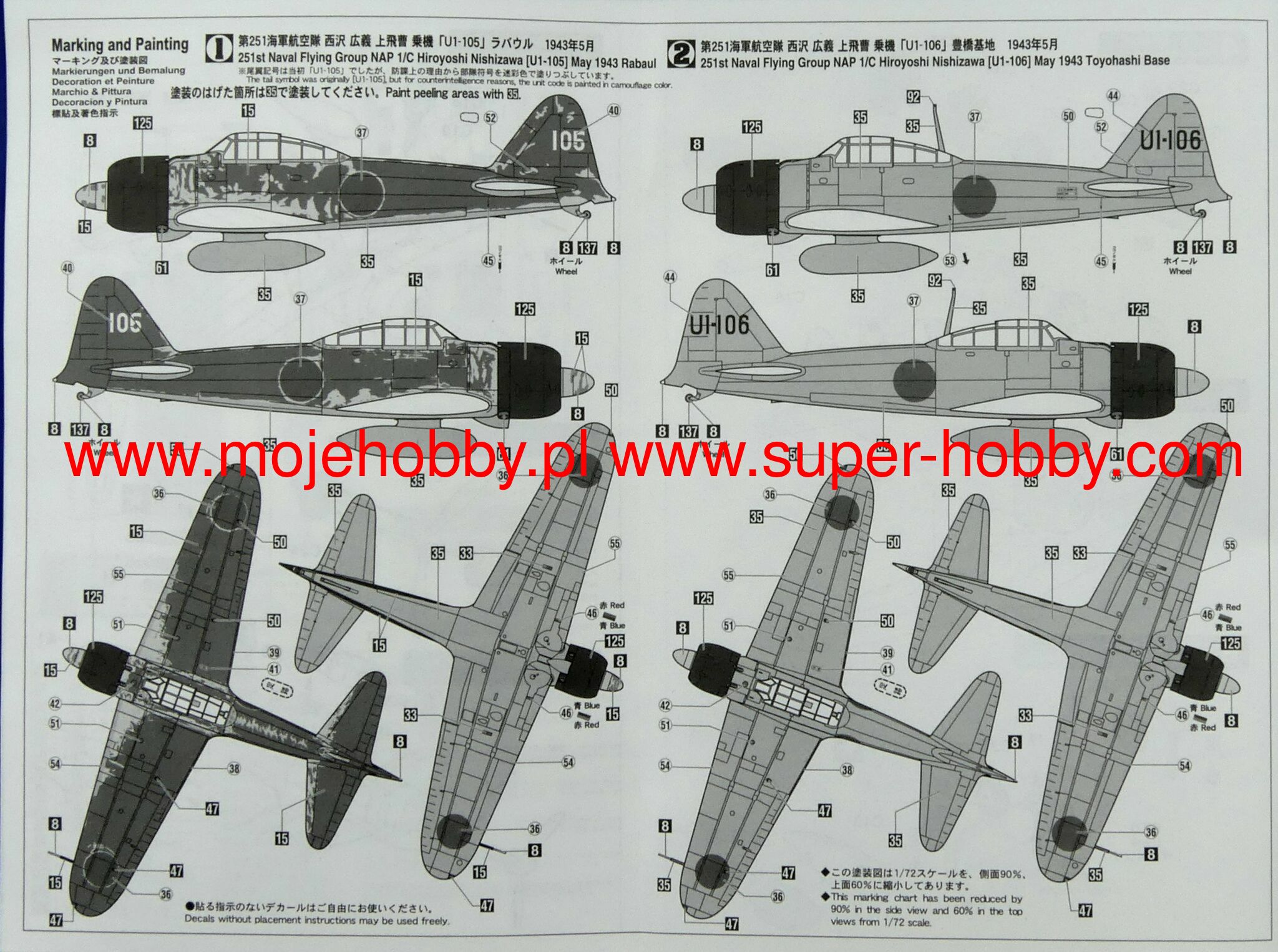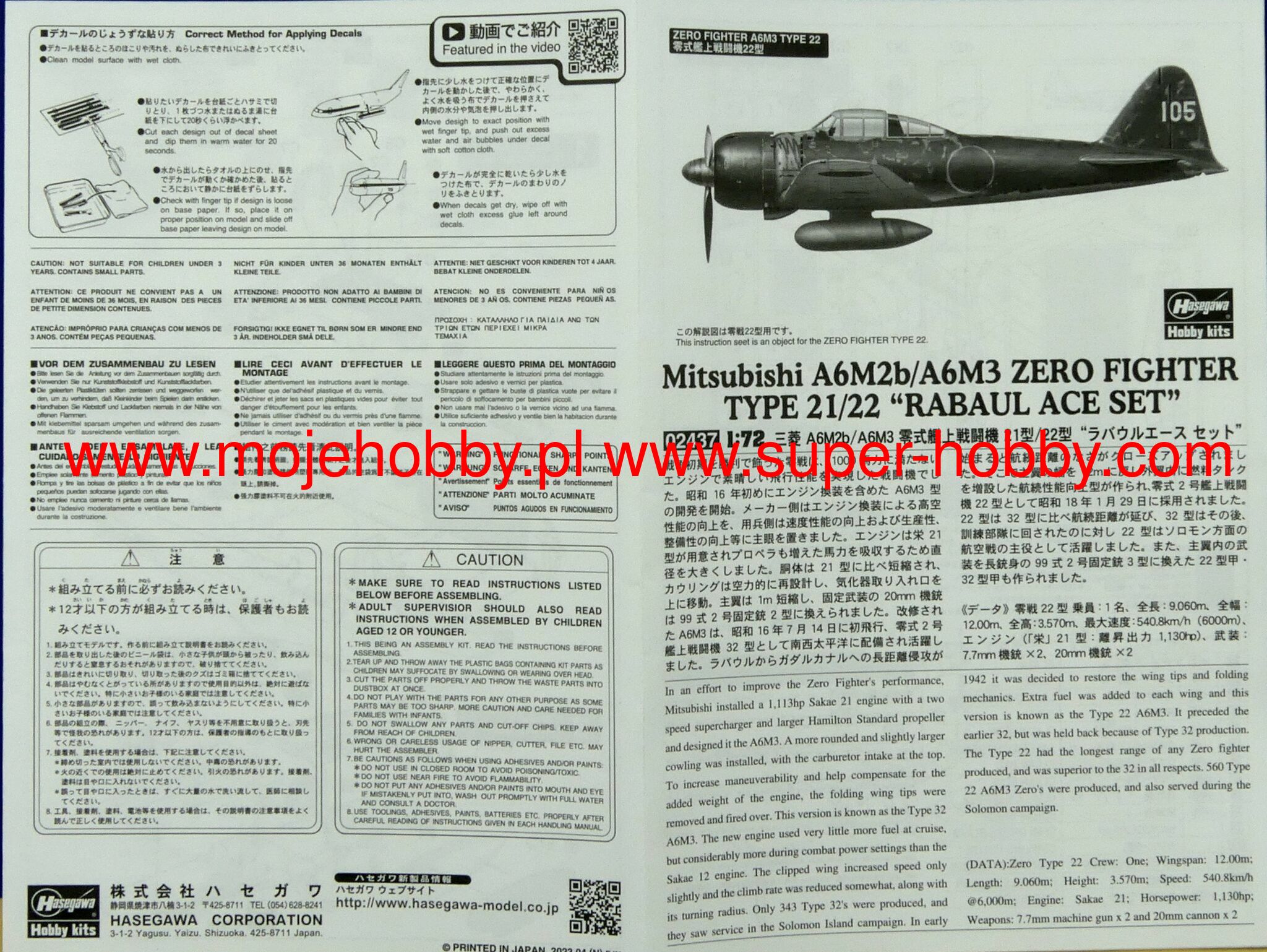 MITSUBISHI A6M2B/A6M3 ZERO FIGHTER TYPE 21/22 'RABAUL ACE SET' (2 KITS IN THE BOX)