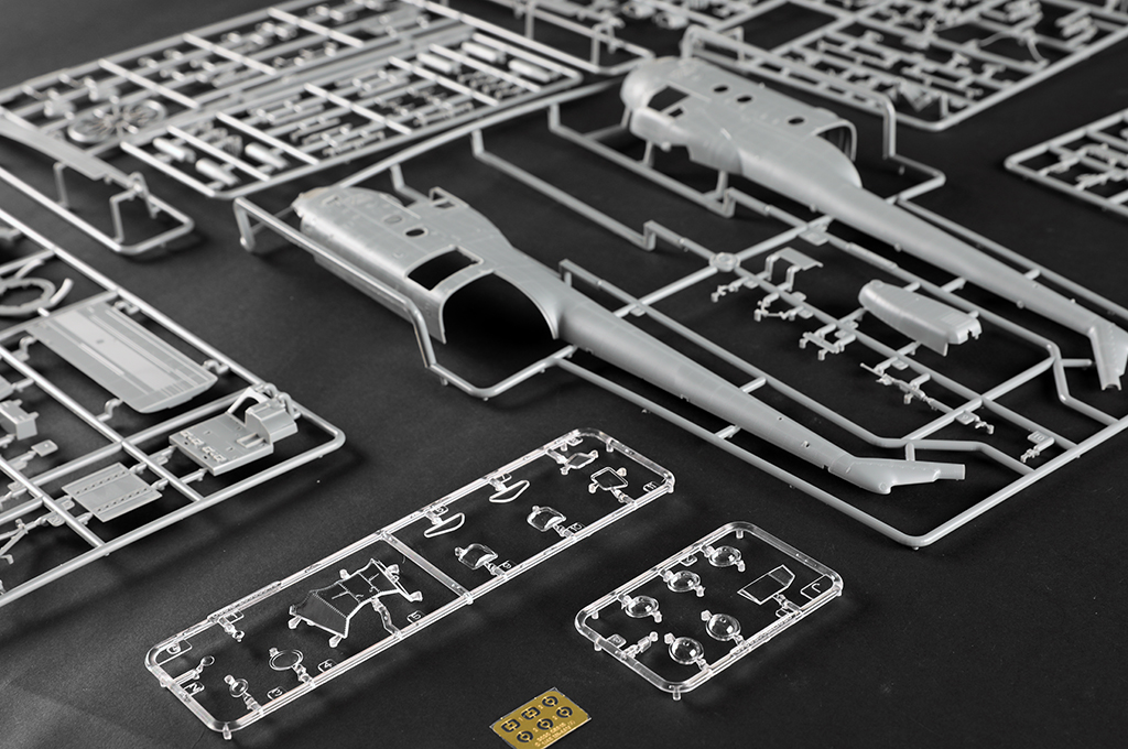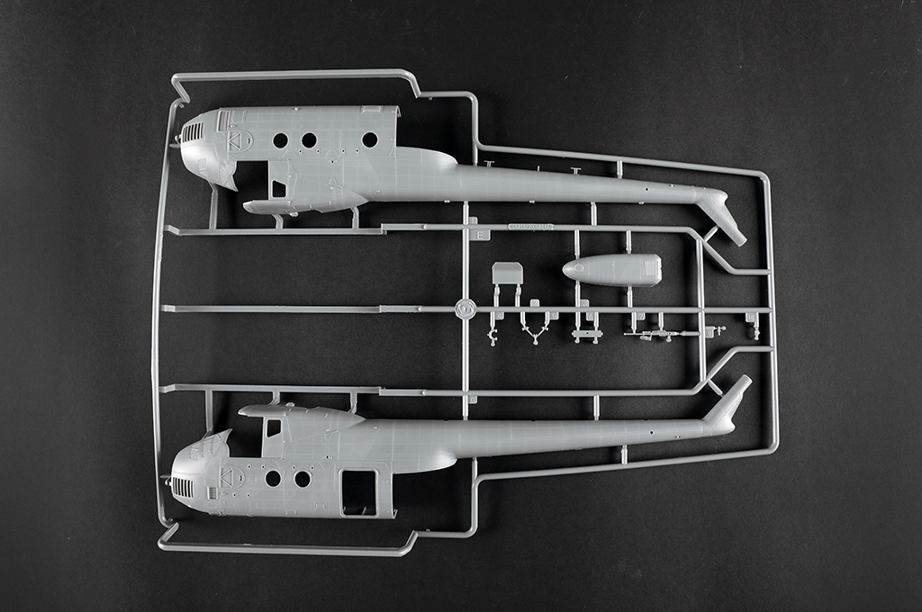 Описание М&-4 (по классификации НАТО: Hound Гончая) советский многоцелевой вертолёт, разработанный в ОКБ Миля в начале 1950-х годов; был первым военно-транспортным вертолётом Вооружённых сил СССР. Имел такую же компоновку, как у американского Sikorsky S-55, но превосходил его по сухой массе более чем в два раза и по грузоподъёмности чуть менее чем в два раза. Просторная грузовая кабина вмещала 1600 кг груза или 12 полностью экипированных десантников. М&-4 стал первым советским вертолётом, оснащённым грузовым люком в задней части с откидными створками и опускающимся трапом. Всего 8 литников Всего деталей 200+ Длина: 340,6 мм Диаметр несущего винта: 430 мм