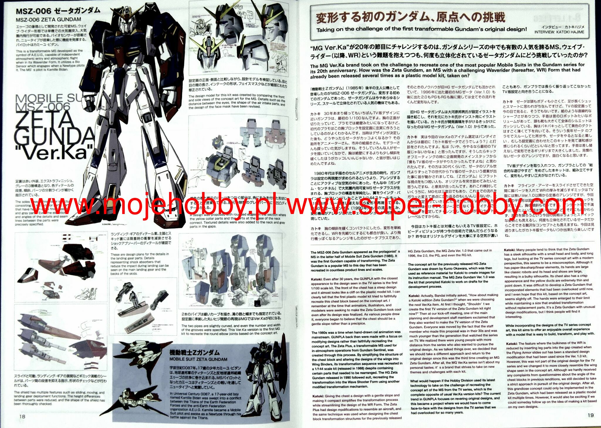 MG - Master Grade The next level is designated as Master Grade, production of which began in 1995. And it is only offered in 1:100 scale. This series is made of the highest quality plastic. These models have many more elements than the other series, which is why the model is more complicated and its assembly takes a long time. The MG series models have the greatest possible range of motion (e.g. movable fingers) compared to the lower series due to the internal skeleton. High quality translates into an amazing look and attention to detail, but nothing stands in the way of using paints to enhance the model. Assembly Difficulty: Hard Number of elements: over 250+ Size: 18cm Contents of the package GUNPLA Model Assembly instructions Short instruction manual in Polish stand* Stickers to enhance the model *Not all models include a stand Special features of the MG series: Scale 1/100, model size 180 mm, more than 260 elements to assemble, difficult level.