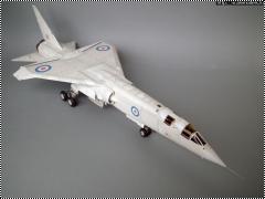 Сборная модель в масштабе 1:144 от производителя Great Wall Hobby (G.W.H.). Разработка экспериментального тактического бомбардировщика-разведчика TSR.2 велась британскими фирмами English Electric и Vickers-Armstrongs, объединившимися в 1960 году в British Aircraft Corporation (BAC). Согласно техзаданию, полученному от британских военных, новый самолет должен был прийти на смену устаревающим бомбардировщикам English Electric Canberra. Практические работы по изготовлению самолета TSR.2 начались в 1960 году, при этом работы по созданию нового бомбардировщика несколько затянулись. В результате новая машина впервые поднялась в воздух только 27 сентября 1964 года. Затягивание работ по созданию бомбардировщика, а также их высокая стоимость стали причиной того, что в 1965 году правительство Великобритании решило прекратить работы над самолетом TSR.2. Снятые с вооружения бомбардировщики Canberra в итоге были заменены на американские истребители-бомбардировщики F-4M Фантом (FGR.2). История самолета TSR.2 (расшифровывается как Tactical Strike and Reconnaissance) началась в марте 1957 года, когда Воздушное командование Великобритании выпустило требования, предъявляемые к самолету, который должен были прийти на смену бомбардировщику Canberra. Для конца 1950-х годов это был очень амбициозный проект. Проектируемый бомбардировщик должен был летать со сверхзвуковой скоростью как на большой высоте, так и у поверхности земли. Самолет должен был быть всепогодным, обладать большим радиусом действия, являться носителем тактического ядерного оружия. Помимо всего прочего, машина должна была взлетать и с грунтовых взлетно-посадочных полос, обладая небольшой длиной разбега при взлете и пробега при посадке. В варианте разведчика данную машину планировалось оснастить самыми современными на тот момент времени средствами радиоэлектронной разведки. (Great Wall Hobby-L1003)