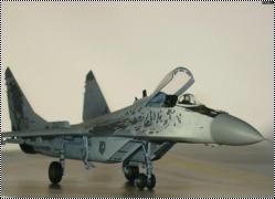 Mikojan-Guriewicz MiG-29 (NATO: Fulcrum) is a Soviet, twin-engine, 4th generation heavy front-line fighter with trapezoidal, strip wings. The mere number of over 1000 MiG 29s produced between 1977 and 1992 proves the potential capabilities of this aircraft. In fact, it must be included in the group of 3 or 4 most important, currently in active service, 4th generation fighters in the world. The MiG-29 was designed in the 1970s as a construction that could match or even exceed the combat capabilities of fighters from the then hostile western camp. And it must be admitted that it is in no way inferior to, for example, the F-16, and with many elements, such as a powerful, twin-engine drive, it surpasses the American competitor. As the MiG-29 was designed to be serviced as quickly as possible, even in the field and by mechanics with minimal experience, any repairs can actually be carried out at lightning speed. It's hard to imagine, but 5 mechanics are able to replace and test an engine in less than an hour! The extraordinary abilities of the Fulcrum do not end there. In case of problems with the drive, even when fully loaded, it can start using one engine, and then fire the other in the air. The permanent armament of the MIG 29 is the 30mm GSh-301 cannon, known for its precision. The external nodes can carry AA-10, AA-11 or AA-8 air-to-air missiles, and UB-32-57 or the unguided but larger S-8K missiles to counter ground targets. not only of the former Eastern Bloc countries, but also many other users who appreciated its great potential. Several versions of this successful fighter were created. The most important of them are, among others the first mass-produced, i.e. the MiG-29 (Fulcrum-A) with the S-29 Topaz radar and the OEPrNk-29 optoelectronic system. Another development version is the MiG-29M (Fulcrum-E) with the S-29M Żuk radar with a greater range and a better guidance and aiming system. More powerful RD-33K engines were also used instead of the RD-33. A fly-by-wire system was also used. Technical data: length: 17.37 m, wingspan: 11.4 m, height: 4.73 m, maximum speed: 2400 km / h, speed of climb: 330 m / s, maximum range: 2100 km, maximum ceiling 18000 m, armament: fixed-1 30mm GSh-301 cannon, suspended (M version) - up to 5000 kg of cargo.
