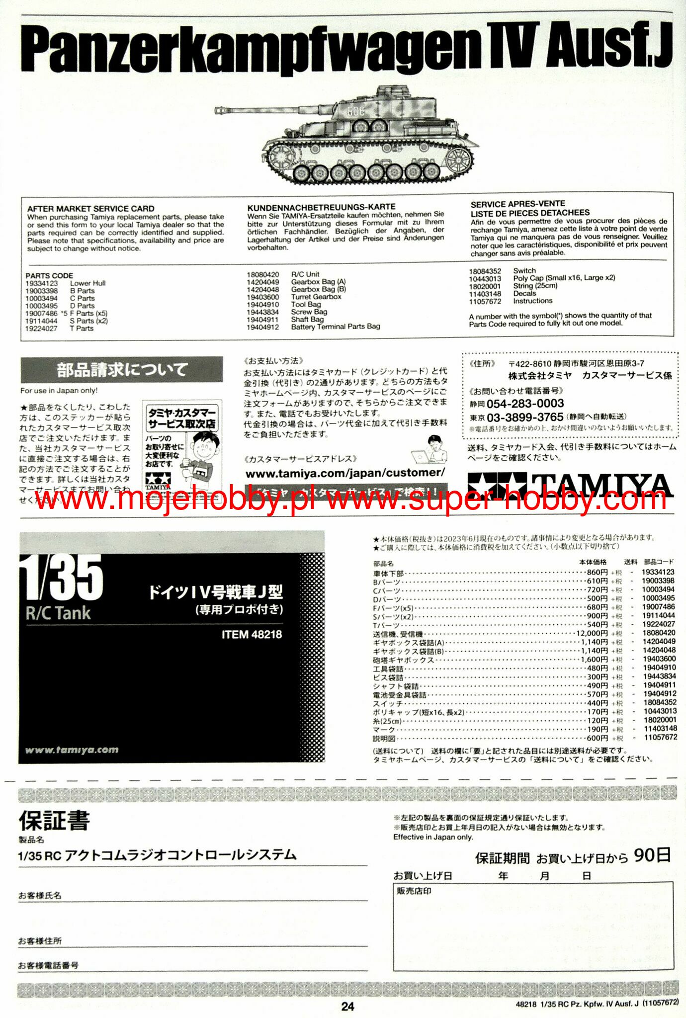 RC GERMAN TANK PANZERKAMPFWAGEN IV AUSF.J (WITH CONTROL UNIT) tamiya 1/35