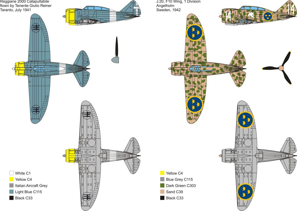 The Reggiane Re.2000 Falco (Italian: Sokół) is an Italian single-engine sea fighter plane with a metal structure in the low wing configuration. The flight of the prototype took place on May 24, 1939, and serial production continued in 1939-1944. The machine was modeled on the American Republic P-35. The Italian aviation only ordered a series of 12 planes, therefore Caproni sold the planes to Sweden and Hungary. At the end of 1941, 24 more copies were made for Italy. Technical data (Re.2000 I): length: 7.99m, wingspan: 11m, height: 3.2m, maximum speed: 530km / h, practical ceiling: 11200m, maximum range: 950km, armament: fixed - 2 machine guns Breda-SAFAT cal. 12.7 mm, suspended - up to 200 kg of bombs.