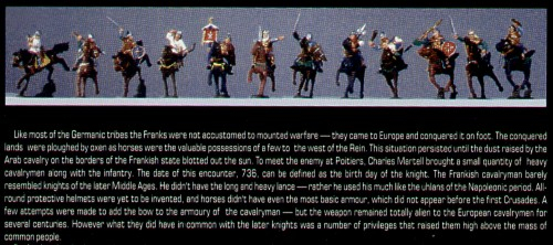 In the very early Middle Ages (6th-7th centuries), infantry played a huge, if not decisive, role on the battlefields. However, over time, cavalry became more and more important. It is assumed that under the rule of the Frankish majordomo Charles the Hammer (first half of the 8th century), cavalry became a de facto key element of the Frankish army, and it also played such a role during the reigns of Pepin the Short and Charlemagne (8th century - early 9th century). Sometimes you can even find opinions that Karol Hammer created a new formation in the army of the Franks, i.e. Frankish armored cavalry. The defensive armament of the Frankish horseman in the 8th-9th centuries consisted primarily of armor - often chain mail or scale armor. The head was very often protected by a Normandy type helmet or a helmet resembling to some extent a later chapel. The legs were protected either by high boots or greaves, although these were rare. The offensive weapons used were primarily a one-handed sword with a relatively long blade and a winged spear. Stirrups were widely used by Frankish horsemen at that time. It can be assumed that this ride was also characterized by good training and high morale. The effectiveness of such driving can be proved by both the Battle of Poitiers, victorious for the Franks (732), as well as the later, most often successful expedition of Charlemagne (he ruled 768-814).