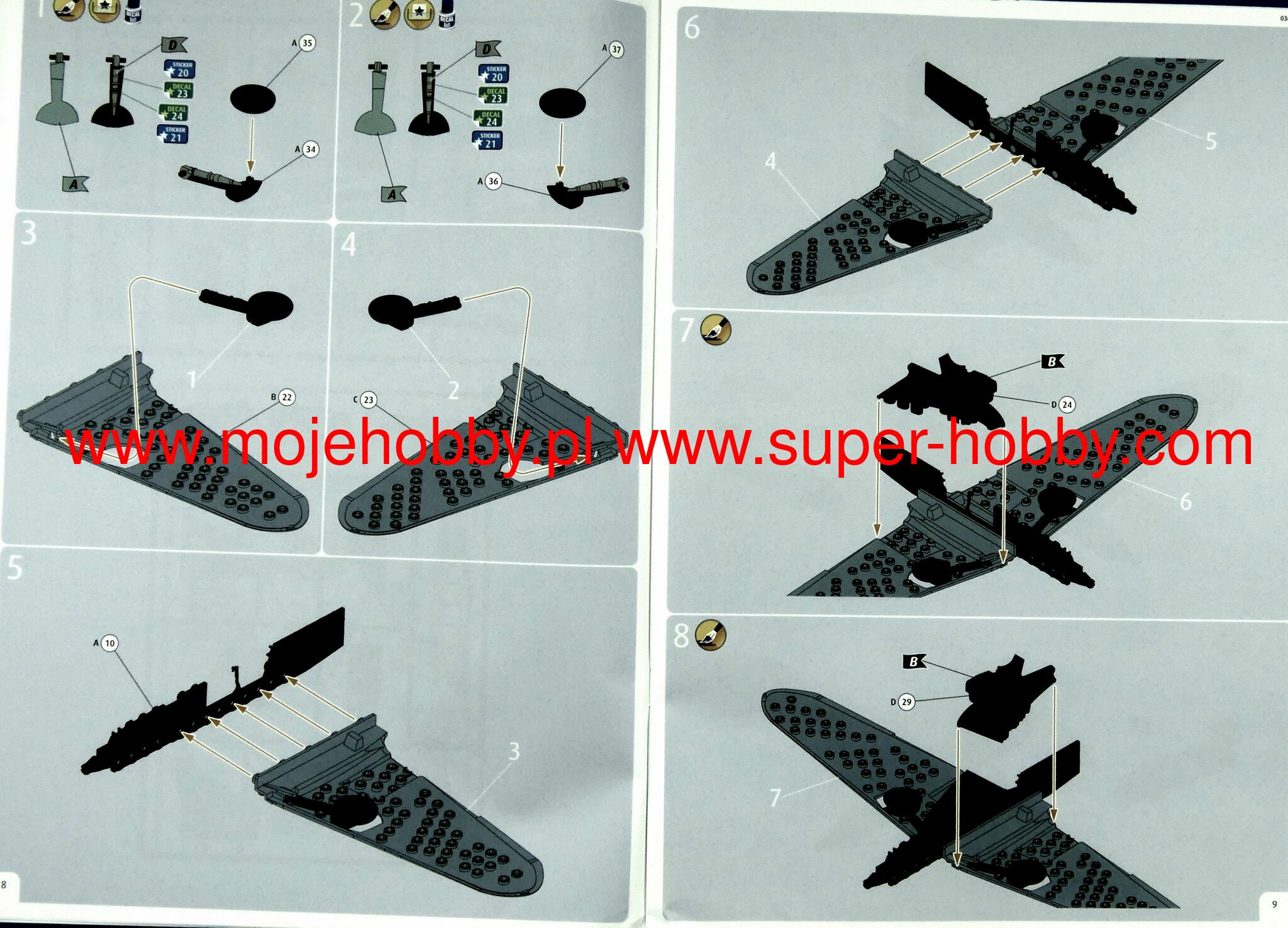 The Messerschmitt Bf-109 is a German metal-structure single-engine fighter in a low wing configuration with a classic tail. It turned out to be the basic and most produced Luftwaffe fighter during World War II. The flight of the prototype took place on May 29, 1935, and serial production continued in the years 1936-1945. In total, it is estimated that a total of about 35,000 Messerschmitt Bf-109 fighters of all varieties were produced, many of which ended up in the Czech and Israeli air forces after the war. The roots of the Bf-109 go back to the competition announced in 1933 by the Luftwaffe for a new fighter plane. In competition with the He-112, the Bf-109 project initially lost, but thanks to Willie Messerschmitt's intrigues, the project could continue and eventually he was the winner of the competition, becoming the Luftwaffe's primary fighter. Several main variants of the Bf-109 were developed in the course of production. The first pre-production series was the Bf-109B (Berta) with different versions of the Junkers Jumo 210 (A or Da) engine. They were tested in Spain from 1937 during the Civil War. The next version is the Bf-109C (Caesar). They had a different engine than the B version, and extensive armament consisting of two 20mm and 2 HP 7.92mm cannons. These machines also fought in the skies of Spain. The third version is the Bf-109D (Dora) with the Junkers Jumo 210 Da or Daimler-Benz DB 600 engine. It fought in the September campaign, but at the turn of 1939/1940 it was replaced by the E version. The most famous model was the Bf-109E (Emil) with a Daimler-Benz 601A or N engine. It was the first to use a three-blade, not a two-blade propeller. Bf-109E fought in the French campaign, over England, and in North Africa and on the Eastern Front. The ace who started his career on the Bf-109E was the famous Adolf Galland. The next version is the Bf-109F (Friedrich), which, according to the German pilots, was the most aerodynamically perfect. It sowed the changed shape of the fuselage, wings, cabin fairings, but no new engine was used. It was put into service at the turn of 1940/1941. As part of the development of the design, further Bf-109 specifications were developed, of which the G (Gustav) version was produced in the largest number of copies. The most important change increasing the machine's performance was the installation of a new 12-cylinder Daimler-Benz DB605A engine with 1475HP. The armament of the Bf-109G was a pair of 13mm machine guns located in the fuselage in front of the cockpit fairing, and the MG151 20mm or heavier MK108 30mm cannon. The last mass-produced version was the Bf-109K (Kurfirst), which production started in October 1944. A Daimler-Benz DB 605DB or DC unit was used as the engine. The Bf-109K was the fastest version produced during World War II, reaching up to 730 km / h. Apart from that, two versions were created - H and Z, but they were rather experimental versions and their mass production did not start. Subsequent improvements in propulsion and armament made the Messerschmitt Bf-109 one of the most dangerous fighters of World War II, and at the same time showed the great potential of the slightly angular airframe created by Willi Messerschmitt. Technical data (version Bf-109 G-6): length: 8.95 m, wingspan: 9.92 m, height: 2.6 m, maximum speed: 640 km / h, rate of climb: 17 m / s, maximum range: 850 km, maximum ceiling 12000m, armament: fixed - 2 MG131 13mm machine guns and 1 MG151 20mm cannon, suspended - 250 kg bombs, or 2 Wfr missile launchers. Gr. 21.