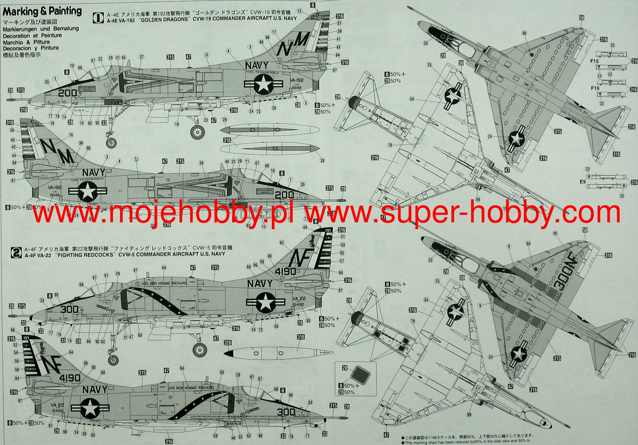 The McDonnell-Douglas A-4 Skyhawk is an American ground attack aircraft, the prototype of which was first flown in 1954. During the prototype trials in 1954, it broke the record for horizontal flight speed in its class of aircraft. The A-4 is a single-engine machine with a low-wing structure with a delta wing, which during use was characterized by high durability and resistance to damage, which won the recognition of pilots. Various versions of the A-4 Skyhawk aircraft took part in the Vietnam War, the Middle East conflicts (1967 and 1973) and the Falklands War (1982). They played a decisive role in the 1967 war, serving in the Israeli Air Force. The production ended in 1979, and so far approximately 2,900 combat versions and approximately 600 training versions have been produced. During the service, numerous versions were created, of which the A-4A (the first mass-produced version), A-4F (enhanced electronics), and A-4G (training version) should be replaced. Fixed armament: 2 Browning Mk 12 cannons (20 mm caliber); Suspended equipment (depending on the version) weighing from 3720 kg to 4155 kg. The plane exported, min. to Argentina, Australia, New Zealand and Singapore. Technical data: Top speed: 1075 km / h; climb speed 28-43m / s, practical ceiling 14900m, maximum range: 3305km.