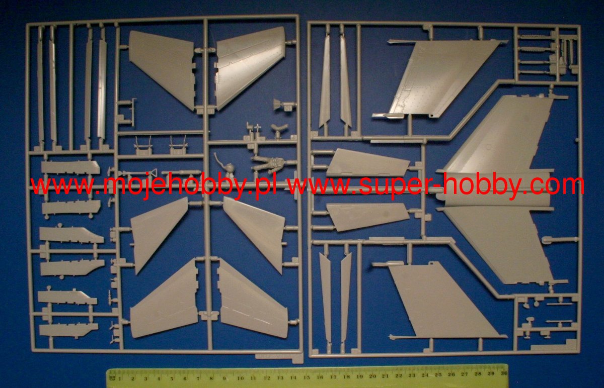 The Vought A-7 Corsair II is a light attack aircraft, adapted to be operated by aircraft carriers. Its history begins in February 1964, when Vought (today LTV Aerospace) was commissioned to develop the design of a new deck plane for the US Navy, intended to replace the A-4 Skyhawk, with greater payload and range. The project was developed on the basis of the F-8 Crusader, adapting it to subsonic flights. The flight of the A-7 prototype was made in 1965, and serial production started a year later. The Corsair II resembles the Crusader silhouette, but the wing wedge angle was not changed, which was redesigned, increasing the number of suspension knots to 6, and - apart from flaps and ailerons - saws and spoilers, a device for hydraulic wing folding was also introduced. The structure was largely unified with the Crusader, using many ready-made elements. The main versions are: A-7E (fighter assault), A-7H (land version), A-7K (new avionics, in service since 1980). The A-7 Corsair II aircraft were used in combat on a large scale in the Vietnam War and in the air attack on Libya in 1986. They were also exported, min. to Greece and Portugal. Technical data: Top speed: 1100 km / h; climb speed 67 m / s, maximum ceiling 16000 m, maximum range: 4600 km, fixed armament: 2 20mm Mk.12 cannons, lifting capacity: up to 6800 kg.