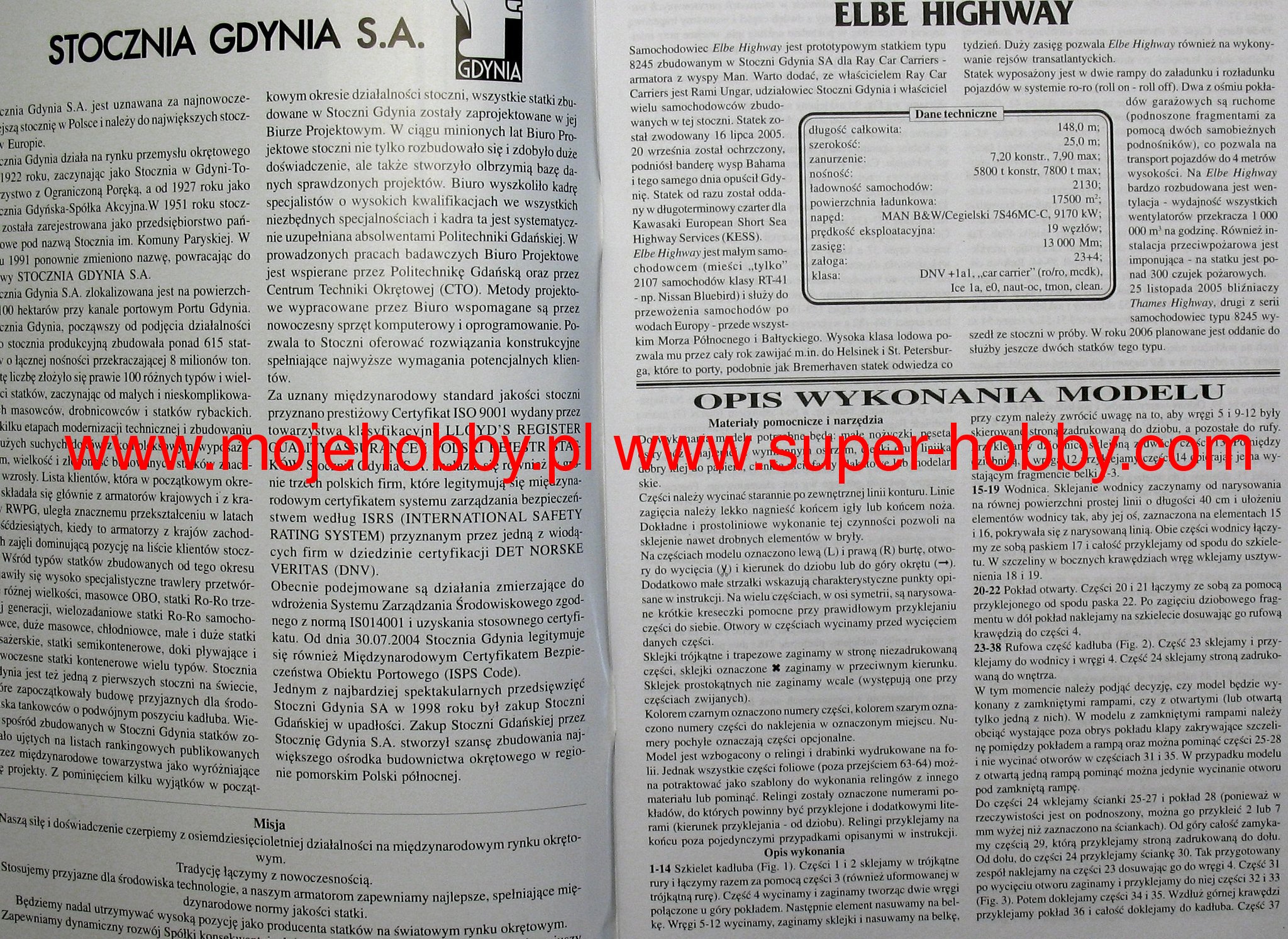 Elbe Highway is a modern ship designed for transporting cars (so-called car carrier). The launch of the vessel took place in July 2005. The ship is 148 meters long and 25 meters wide. The maximum load capacity is 7,800 tons and the maximum speed is 19 knots. The crew of this large ship is only 23-27 people! Elbe Highway was designed and built at Gdynia Shipyard SA for the shipping company Ray Car Carriers, which is based on the Isle of Man, but the vessel sailed under the flag of the Bahamas. The unit is able to transport about 2,100 passenger cars at a time, and thanks to the special structure of the hull and plating, it is able to sail on icy waters. The Elbe Highway has been designed for cruises mainly in the waters of the Baltic and North Seas, but the ship can also make cruises across the Atlantic. Interestingly, the unit has very extensive ventilation and fire protection systems. It is also worth noting that the Elbe Highway was the first type 8245 unit put into service.