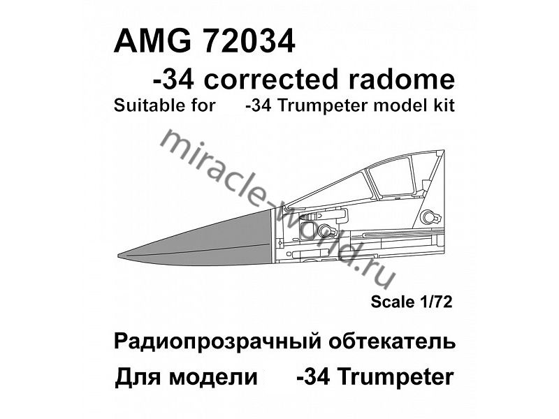 Купить AMIGO AMG 72034 РАДИОПРОЗРАЧНЫЙ ОБТЕКАТЕЛЬ БРЛС Ш-141 ДЛЯ САМОЛЕТ (С) ТИП 34 1/72 (1/72)
