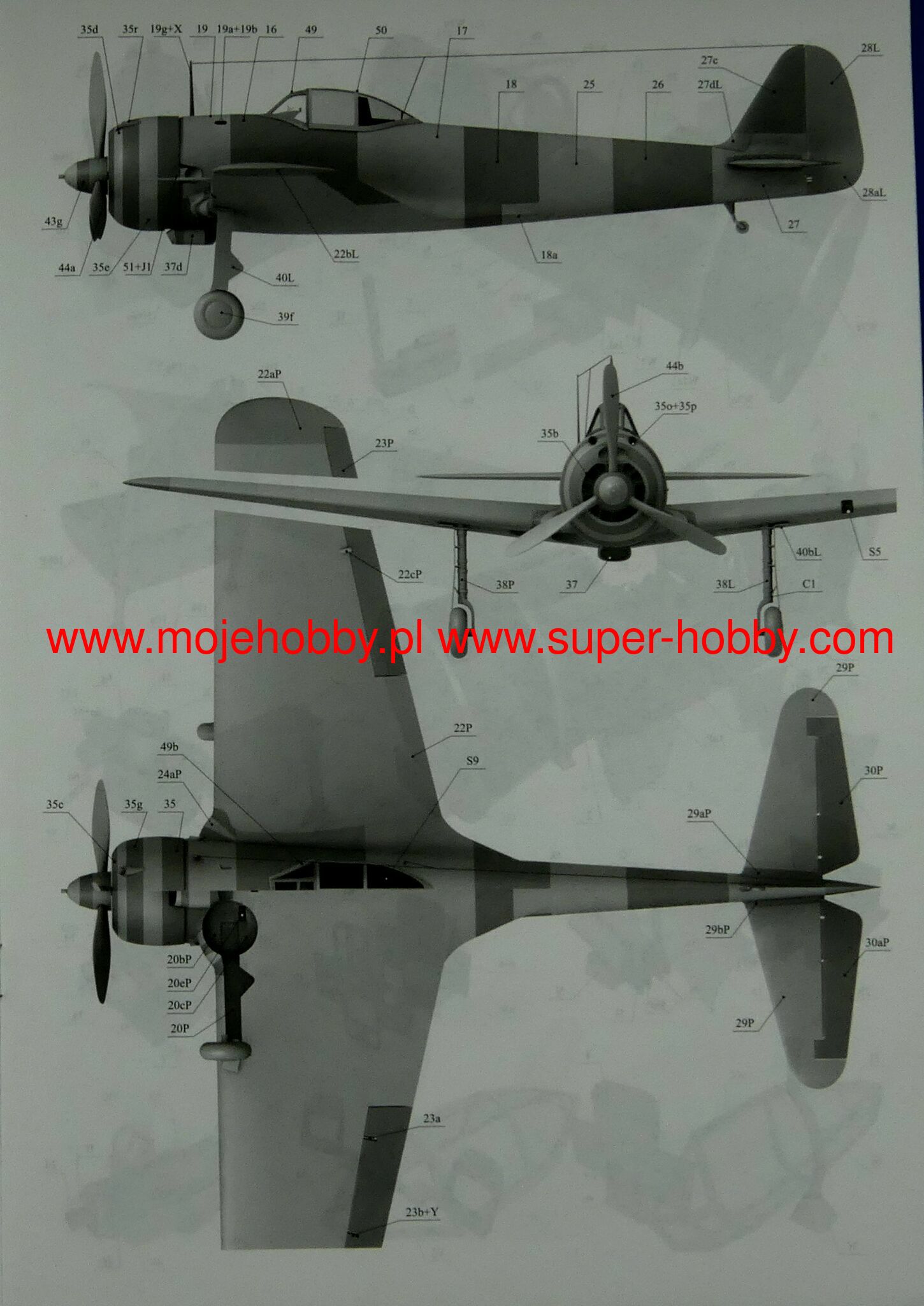 The Nakajima Ki-43 Hayabusa (Japanese peregrine falcon) is a Japanese, single-engine, metal, semi-shell fighter in a low wing design from the Second World War. The USAF nicknamed this machine Oscar. The flight of the prototype took place in January 1939, and the entry into the line units in 1941. The Ki-43 Hayabusa was the most important and most numerous fighter in the Japanese Air Force during the entire war. In the years 1939-1945, three main versions of the aircraft were created, each of which had several revisions. The first production series is the Ki-43-I powered by the 950 HP Nakajima Ha-25 engine or the Ha-25 Type 99 version with 980 HP. This Ki-43 model turned out to be in the period 1941-1942 a machine definitely superior to Allied planes, for example Brewster Buffalo or P-40. At the same time, it was commonly confused with the famous A6M Zero. The next development version is the Ki-43-II with a new, more powerful version of the Ha-25 engine, with makeshift cabin armor and self-sealing fuel tanks. The outline of the wing and engine silencers were also changed. Its production started in 1942. The latest version is the Ki-43-III, powered by a Nakajima Ha-115-II Sakae engine with a capacity of 1230KM. It entered production in December 1944 and was used to defend the Japanese islands against Allied air strikes and for suicide missions as a kamikaze plane. All versions of the Ki-43 were liked very much by pilots due to their excellent flight characteristics and, above all, excellent maneuverability. Almost every Army Air Force ace has flown the Ki-43 at some point in his career, and moreover has had aerial victories with it. One of the best Ki-43 pilots was Satoshi Anabuki, who had 39 confident victories throughout his career. Technical data (version Ki-43-II): length: 8.92 m, wingspan: 10.84 m, height: 3.27 m, maximum speed: 548 km / h, maximum range: 1760 km, maximum ceiling 11200 m, armament: fixed- 2 Type 1 machine guns, caliber 12.7 mm, underslung - 2 bombs 30 kg or 2 fuel tanks, 200 liters each.