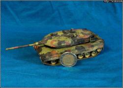 Описание Леопа́рд-2 (нем. Leopard 2) немецкий основной боевой танк второго поколения. Танк начала разрабатывать в 1968 году фирма Krauss-Maffei, в 1970 году министр обороны ФРГ Гельмут Шмидт сделал его основой для перспективного боевого танка для бундесвера, в 1972 году были построены первые прототипы. В 1976 году прототип Leopard 2AV проходил сравнительные испытания вместе с прототипом XM1 на Абердинском полигоне в США. Первый серийный танк Леопард-2 был передан немецкой армии 25 октября 1979 года. К 2015 году всего было произведено более 3600 танков этого типа. Leopard 2A6 Представляет собой модернизацию танков предыдущих выпусков в рамках 1-й фазы программы улучшения боевого потенциала (KWS I). В 1997 году несколько Leopard 2A5 в рамках программы KWS I были оснащены для испытаний 120-мм пушкой с длиной ствола L/55. Всего для бундесвера с 2001 по 2005 год было модернизировано 225 машин. 160 из танков Leopard 2A5, и 65 из Leopard 2A4. Первые Leopard 2A6 были поставлены бундесверу 7 марта 2001 года. В целом Leopard 2A6 повторяет конструкцию Leopard 2A5. Основное изменение замена пушки на Rh 120/L55 с увеличенной на 11 калибров (1320 мм) длиной ствола. Снаряд DM53 (LKE-II) с сердечником из карбида вольфрама, выпущенный из новой пушки, пробивает до 1000 миллиметров брони RHA в зависимости от расстояния стрельбы. Дальность выстрела увеличилась до 5 км. Также были доработаны: система тепловой коррекции прицела EMES 15, тормозная система, СУО, система поворота башни и стабилизации пушки E-WNA, места для хранения на корме башни. Масса танка выросла до 62 тонн. Краткая информация о модели Длина: 135 мм Ширина: 50 мм Всего деталей 40+ 1 литник, верх корпуса, низ корпуса, башня и гусеницы