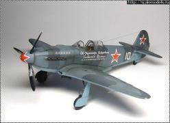 Soviet fighter plane developed by Alexander Yakovlev's design bureau, a development of the Yak-1b design. Improvements in the design of the aircraft were aimed at increasing speed and maneuverability. First of all, the aerodynamics of the plane was improved by removing the protruding parts of the plane. The inlet to the oil cooler was changed to two inlets at the base of the wings, the tail wheel was pulled into the fuselage, and the antenna mast was removed. In addition, through a thorough analysis of the airframe structure, it was relieved by 200 kg. The first prototype known as the Yak-1M was made in April 1943. Already the first tests showed a significant improvement in the performance and pilot properties of the aircraft. Mass production, however, was characterized by low performance and, as a result, serial airplanes had reduced performance due to the increase in weight. For this reason, one of the UBS rifles was removed from service. After being introduced to Russian combat units in 1943 and the first meetings with German fighters, German pilots were formally prohibited from engaging in combat with "Yaks without a front radiator and antenna mast". In general, the plane was rated very high, although there were reservations about too weak weapons, which did not allow the first attempt to shoot down a bomber. A total of 25 aircraft of this type were used in the Polish aviation in the period from November 1944 to February 1946. The Yakovlev Yak-3 plane was a single-engine low-wing mixed or all-metal construction (at the end of the war). The wooden hull consisted of a welded steel truss covered with duralumin (in the front and middle part), and plywood covered with cloth (at the back of the hull). Wooden wings with a duralumin girder, covered with plywood. Metal shuttlecocks. Horizontal wooden legs covered with plywood and linen. Control surfaces are covered with duralumin sheet. Classic retractable landing gear. With retractable tail wheel. Technical data: length: 8.5 m, wingspan: 9.2 m, height: 2.39 m, maximum speed: 655 km / h, speed of climb: 18.5 m / s, practical ceiling: 10 700 m, maximum range: 650 km, armament: Fixed - 2 12.7mm Berezie UBS machine guns and 1 20mm SzWAK cannon.