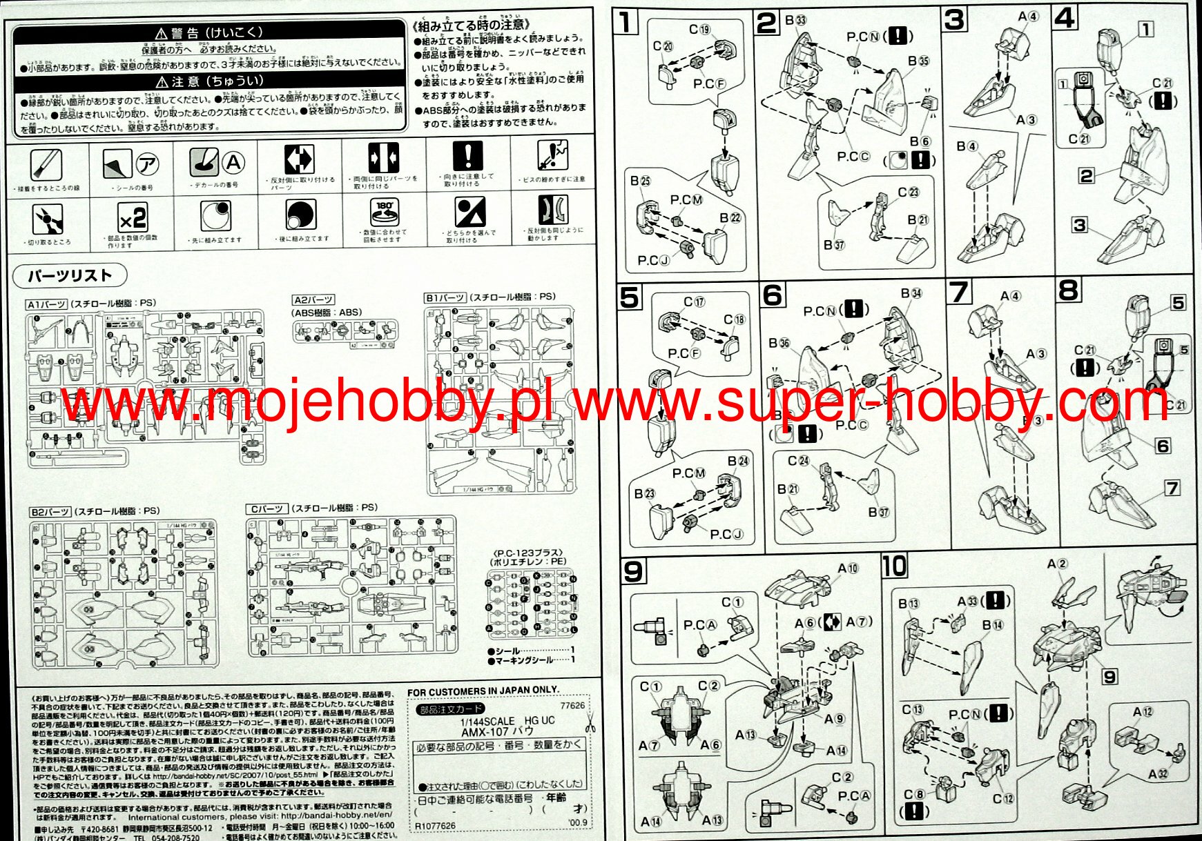 HG - High Grade Models presented in 1990 in 1:144 scale. These were groundbreaking models in the series because their quality was significantly improved compared to previous models and they had a full range of movements. Assembly Difficulty: Medium Number of elements: over 150+ Size: 13cm Contents of the package GUNPLA Model Assembly instructions Short instruction manual in Polish Stand* Stickers to enhance the model *Not all models include a stand Special features of the HG series: Scale 1/144, model size 130 mm, over 150 elements to assemble, medium level.