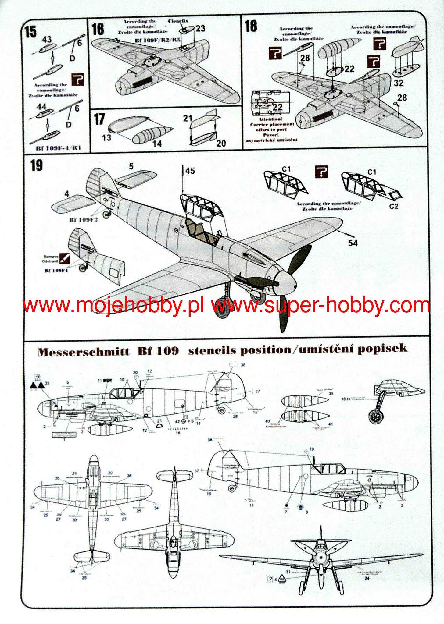 The Messerschmitt Bf-109 is a German metal-structure single-engine fighter in a low wing configuration with a classic tail. It turned out to be the basic and most produced Luftwaffe fighter during World War II. The flight of the prototype took place on May 29, 1935, and serial production continued in the years 1936-1945. In total, it is estimated that a total of about 35,000 Messerschmitt Bf-109 fighters of all varieties were produced, many of which ended up in the Czech and Israeli air forces after the war. The roots of the Bf-109 go back to the competition announced in 1933 by the Luftwaffe for a new fighter plane. In competition with the He-112, the Bf-109 project initially lost, but thanks to Willie Messerschmitt's intrigues, the project could continue and eventually he was the winner of the competition, becoming the Luftwaffe's primary fighter. Several main variants of the Bf-109 were developed in the course of production. The first pre-production series was the Bf-109B (Berta) with different versions of the Junkers Jumo 210 (A or Da) engine. They were tested in Spain from 1937 during the Civil War. The next version is the Bf-109C (Caesar). They had a different engine than the B version, and extensive armament consisting of two 20mm and 2 HP 7.92mm cannons. These machines also fought in the skies of Spain. The third version is the Bf-109D (Dora) with the Junkers Jumo 210 Da or Daimler-Benz DB 600 engine. It fought in the September campaign, but at the turn of 1939/1940 it was replaced by the E version. The most famous model was the Bf-109E (Emil) with a Daimler-Benz 601A or N engine. It was the first to use a three-blade, not a two-blade propeller. Bf-109E fought in the French campaign, over England, and in North Africa and on the Eastern Front. The ace who started his career on the Bf-109E was the famous Adolf Galland. The next version is the Bf-109F (Friedrich), which, according to the German pilots, was the most aerodynamically perfect. It sowed the changed shape of the fuselage, wings, cabin fairings, but no new engine was used. It was put into service at the turn of 1940/1941. As part of the development of the design, further Bf-109 specifications were developed, of which the G (Gustav) version was produced in the largest number of copies. The most important change increasing the machine's performance was the installation of a new 12-cylinder Daimler-Benz DB605A engine with 1475HP. The armament of the Bf-109G was a pair of 13mm machine guns located in the fuselage in front of the cockpit fairing, and the MG151 20mm or heavier MK108 30mm cannon. The last mass-produced version was the Bf-109K (Kurfirst), which production started in October 1944. A Daimler-Benz DB 605DB or DC unit was used as the engine. The Bf-109K was the fastest version produced during World War II, reaching up to 730 km / h. Apart from that, two versions were created - H and Z, but they were rather experimental versions and their mass production did not start. Subsequent improvements in propulsion and armament made the Messerschmitt Bf-109 one of the most dangerous fighters of World War II, and at the same time showed the great potential of the slightly angular airframe created by Willi Messerschmitt. Technical data (version Bf-109 G-6): length: 8.95 m, wingspan: 9.92 m, height: 2.6 m, maximum speed: 640 km / h, rate of climb: 17 m / s, maximum range: 850 km, maximum ceiling 12000m, armament: fixed - 2 MG131 13mm machine guns and 1 MG151 20mm cannon, suspended - 250 kg bombs, or 2 Wfr missile launchers. Gr. 21.