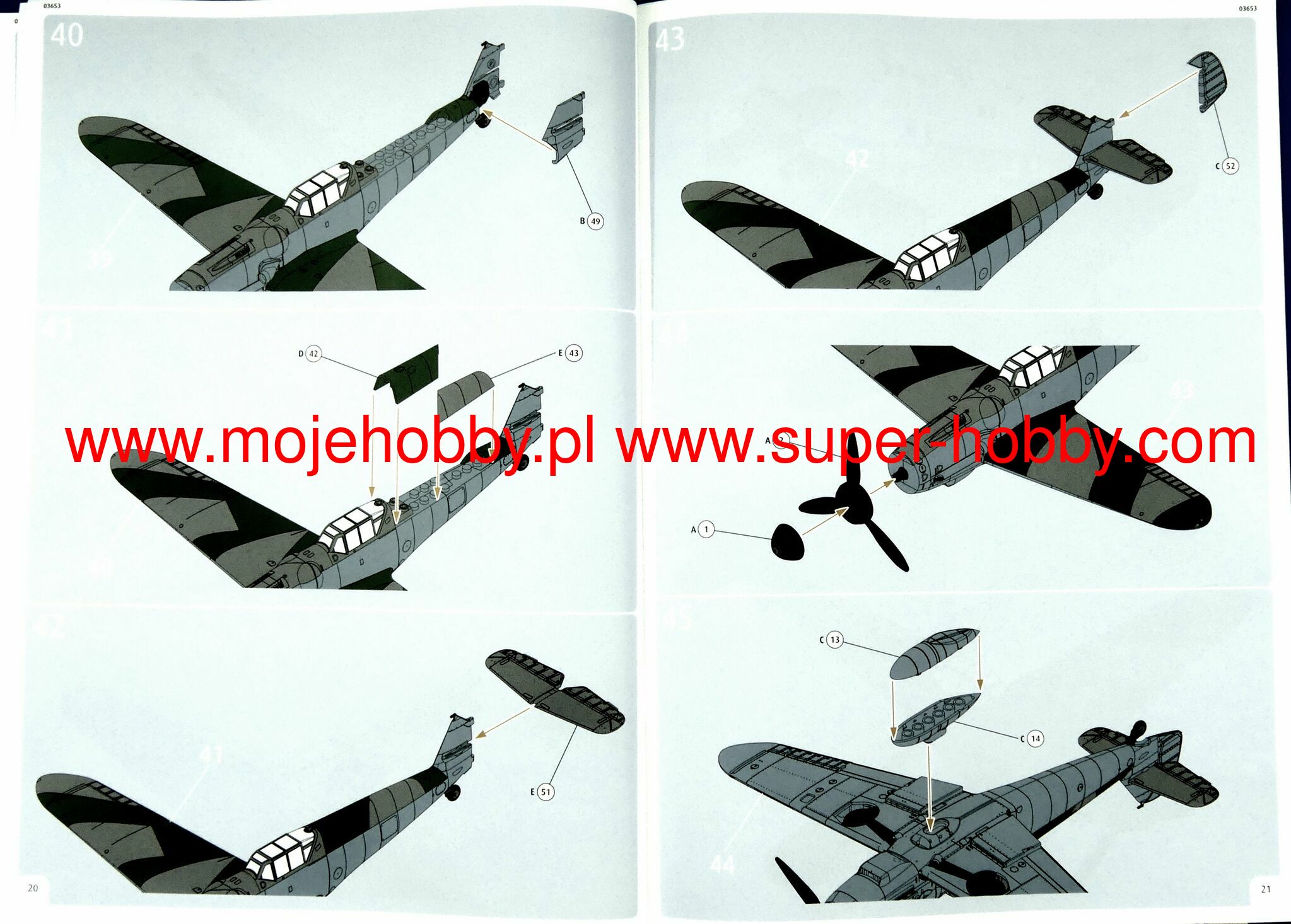 The Messerschmitt Bf-109 is a German metal-structure single-engine fighter in a low wing configuration with a classic tail. It turned out to be the basic and most produced Luftwaffe fighter during World War II. The flight of the prototype took place on May 29, 1935, and serial production continued in the years 1936-1945. In total, it is estimated that a total of about 35,000 Messerschmitt Bf-109 fighters of all varieties were produced, many of which ended up in the Czech and Israeli air forces after the war. The roots of the Bf-109 go back to the competition announced in 1933 by the Luftwaffe for a new fighter plane. In competition with the He-112, the Bf-109 project initially lost, but thanks to Willie Messerschmitt's intrigues, the project could continue and eventually he was the winner of the competition, becoming the Luftwaffe's primary fighter. Several main variants of the Bf-109 were developed in the course of production. The first pre-production series was the Bf-109B (Berta) with different versions of the Junkers Jumo 210 (A or Da) engine. They were tested in Spain from 1937 during the Civil War. The next version is the Bf-109C (Caesar). They had a different engine than the B version, and extensive armament consisting of two 20mm and 2 HP 7.92mm cannons. These machines also fought in the skies of Spain. The third version is the Bf-109D (Dora) with the Junkers Jumo 210 Da or Daimler-Benz DB 600 engine. It fought in the September campaign, but at the turn of 1939/1940 it was replaced by the E version. The most famous model was the Bf-109E (Emil) with a Daimler-Benz 601A or N engine. It was the first to use a three-blade, not a two-blade propeller. Bf-109E fought in the French campaign, over England, and in North Africa and on the Eastern Front. The ace who started his career on the Bf-109E was the famous Adolf Galland. The next version is the Bf-109F (Friedrich), which, according to the German pilots, was the most aerodynamically perfect. It sowed the changed shape of the fuselage, wings, cabin fairings, but no new engine was used. It was put into service at the turn of 1940/1941. As part of the development of the design, further Bf-109 specifications were developed, of which the G (Gustav) version was produced in the largest number of copies. The most important change increasing the machine's performance was the installation of a new 12-cylinder Daimler-Benz DB605A engine with 1475HP. The armament of the Bf-109G was a pair of 13mm machine guns located in the fuselage in front of the cockpit fairing, and the MG151 20mm or heavier MK108 30mm cannon. The last mass-produced version was the Bf-109K (Kurfirst), which production started in October 1944. A Daimler-Benz DB 605DB or DC unit was used as the engine. The Bf-109K was the fastest version produced during World War II, reaching up to 730 km / h. Apart from that, two versions were created - H and Z, but they were rather experimental versions and their mass production did not start. Subsequent improvements in propulsion and armament made the Messerschmitt Bf-109 one of the most dangerous fighters of World War II, and at the same time showed the great potential of the slightly angular airframe created by Willi Messerschmitt. Technical data (version Bf-109 G-6): length: 8.95 m, wingspan: 9.92 m, height: 2.6 m, maximum speed: 640 km / h, rate of climb: 17 m / s, maximum range: 850 km, maximum ceiling 12000m, armament: fixed - 2 MG131 13mm machine guns and 1 MG151 20mm cannon, suspended - 250 kg bombs, or 2 Wfr missile launchers. Gr. 21.