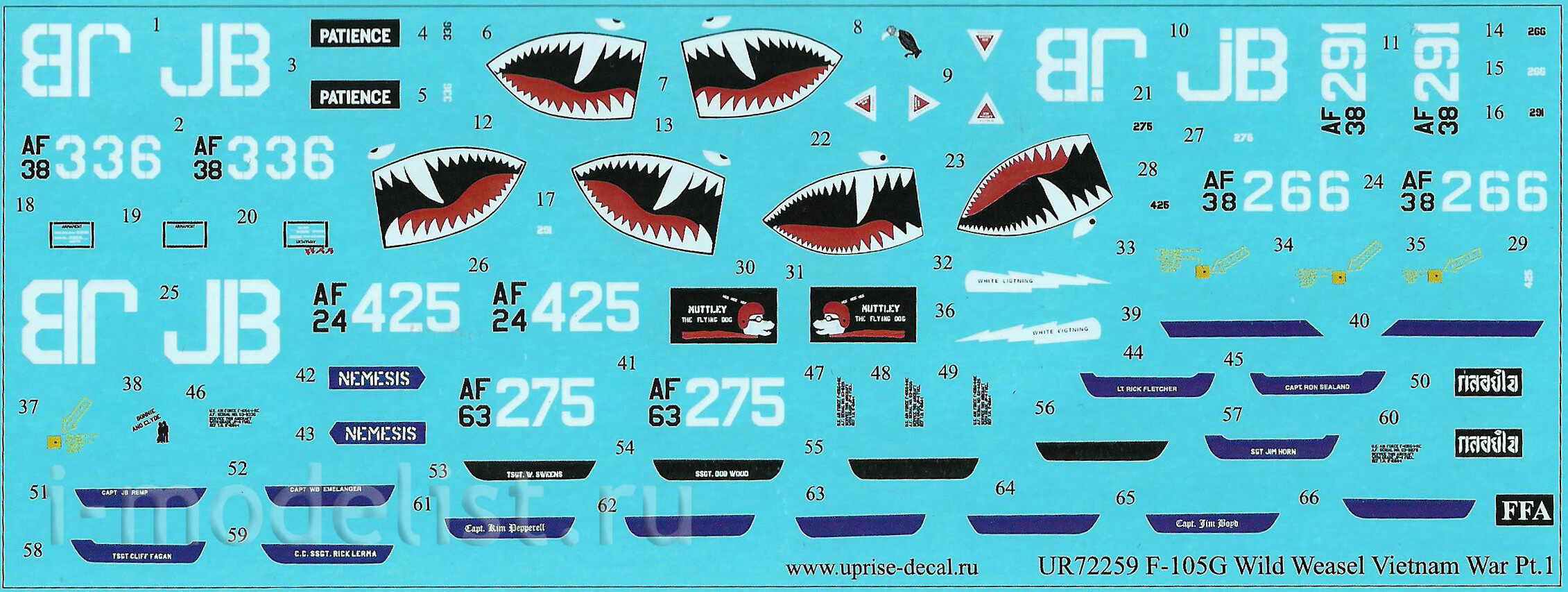 UR72259 UPRISE 1/72 ДЕКАЛЬ ДЛЯ F-105G THUNDERCHIEF VIETNAM WAR PT.1, С ТЕХ. НАДПИСЯМИ