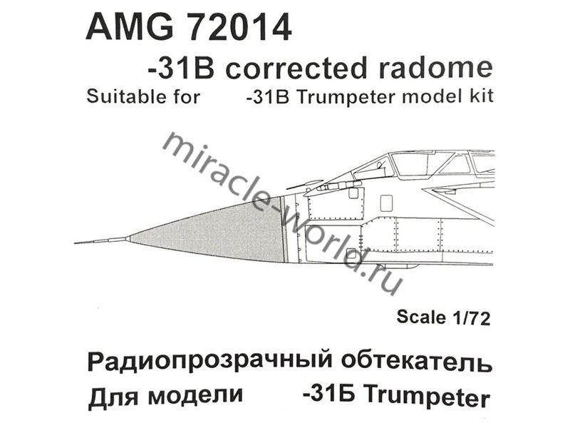 Купить AMIGO AMG 72014 РАДИОПРОЗРАЧНЫЙ ОБТЕКАТЕЛЬ БРЛС "ЗАСЛОН" ДЛЯ САМОЛЕТ (М) ТИП 31Б 1/72 (1/72)