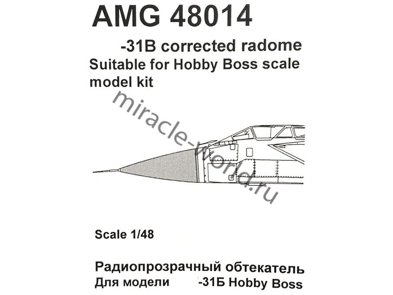 Купить AMIGO AMG 48014 РАДИОПРОЗРАЧНЫЙ ОБТЕКАТЕЛЬ БРЛС «ЗАСЛОН» ДЛЯ САМОЛЕТ (М) ТИП 31Б 1/48 (1/48)