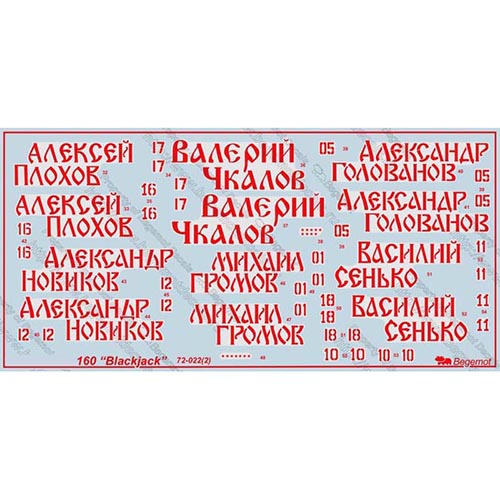 Купить 72-022 BEGEMOT ДЕКАЛЬ ДЛЯ Т-160 "BLACKJACK" (1/144)