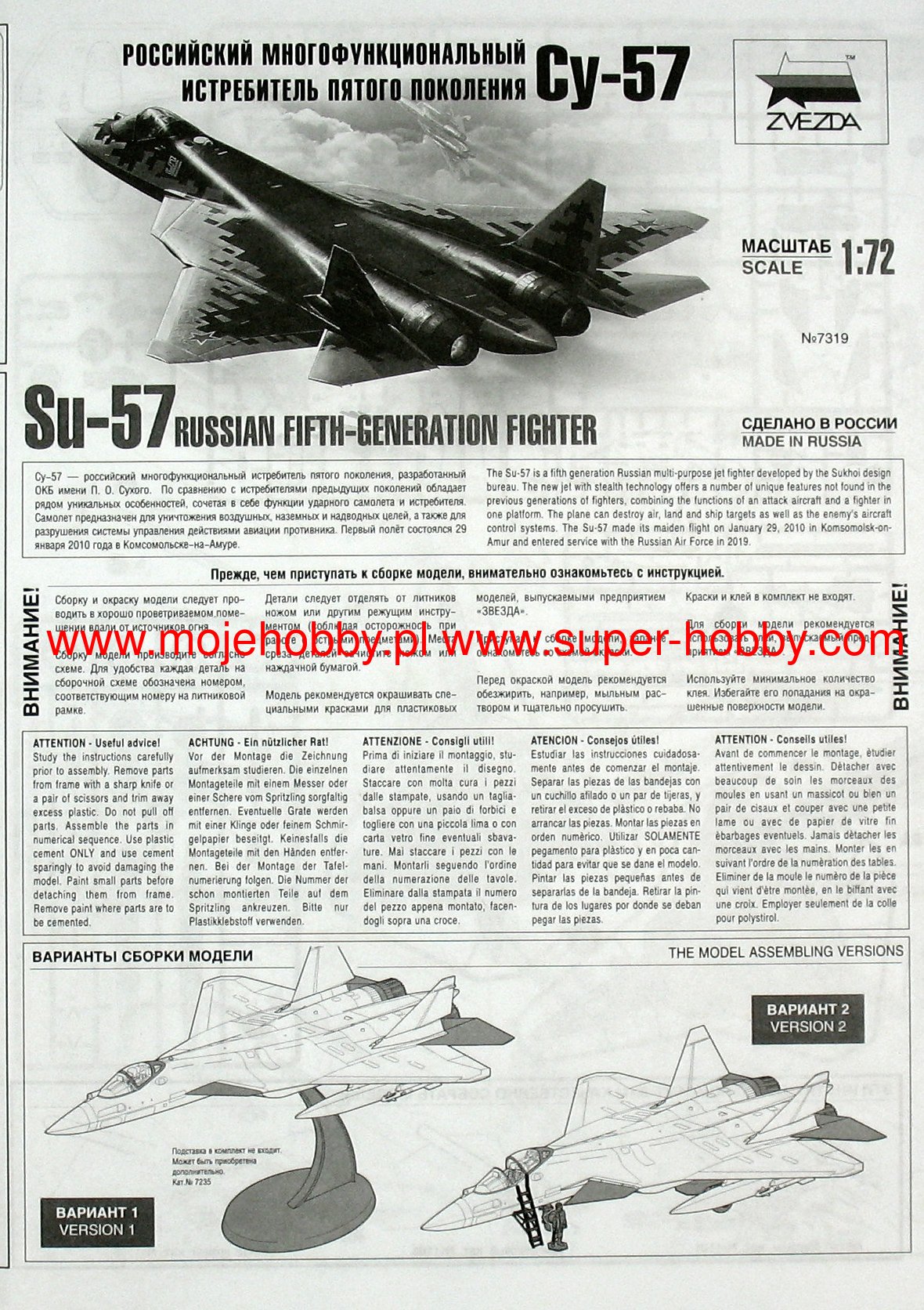 Купить Российский многофункциональный истребитель пятого поколения Су-57 (1/72)