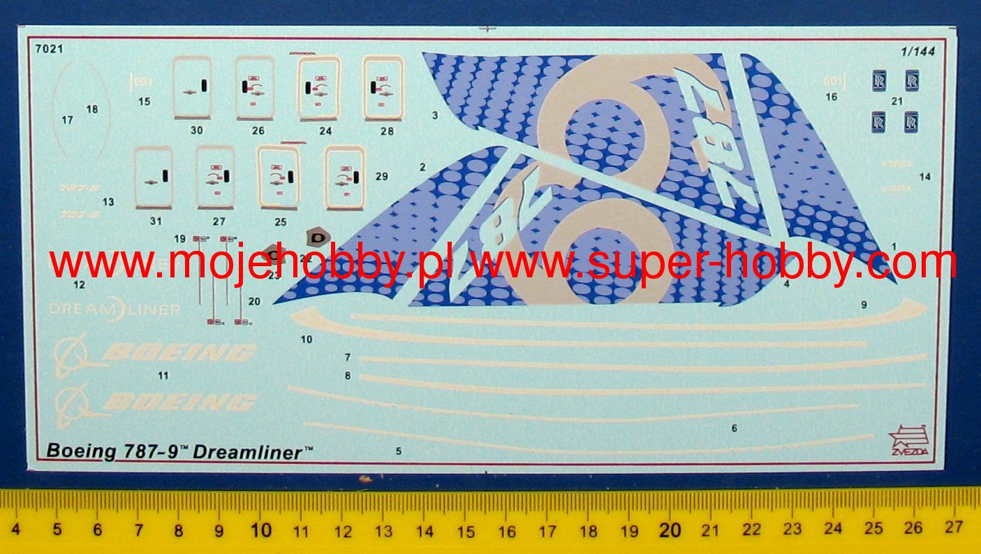 Сборная модель - Пассажирский авиалайнер Боинг 787-9 Дримлайнер. Модификация нашумевшей модели 787-8 (7008) с удлиненным фюзеляжем. Прототип прошел летную сертификацию в 2014 году и в настоящий момент производится серийно. Боинг 787-9 может перевозить до 420 пассажиров. Максимальная дальность полета составляет 14000 км. Набор деталей из пластмассы для сборки одной модели самолета. Модель собирается при помощи специального клея, выпускаемого предприятием Звезда. Краски продаются отдельно от набора. Состав набора: отливки инструкция по сборке декаль