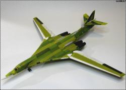 Сборная модель - Российский сверхзвуковой стратегический бомбардировщик Ту-160. Историческая справка: Стратегический бомбардировщик Ту-160 может поражать ядерным и обычным оружием объекты, расположенные в любой точке земного шара. Первый полет Ту-160 состоялся 6 октября 1984 года, в воздух поднялся самолет, имеющий полный комплект оборудования серийного бомбардировщика. Благодаря крылу изменяемой стреловидности Ту-160 способен совершать полет как на малых высотах , в режиме следованию рельефу местности, так и на больших высотах( в том числе и со сверхзвуковой скоростью). Особенности аэродинамической компоновки вместе с реализацией ряда технических решений позволили значительно снизить радиолокационную заметность бомбардировщика. Ту-160 является самым большим серийным боевым самолетом в мире. На вооружении ВВС России состоят 14 стратегических бомбардировщиков Ту-160. Набор деталей из пластмассы для сборки одной модели самолета. Модель собирается при помощи специального клея, выпускаемого предприятием Звезда. Краски продаются отдельно от набора. Состав набора: отливки инструкция по сборке декаль