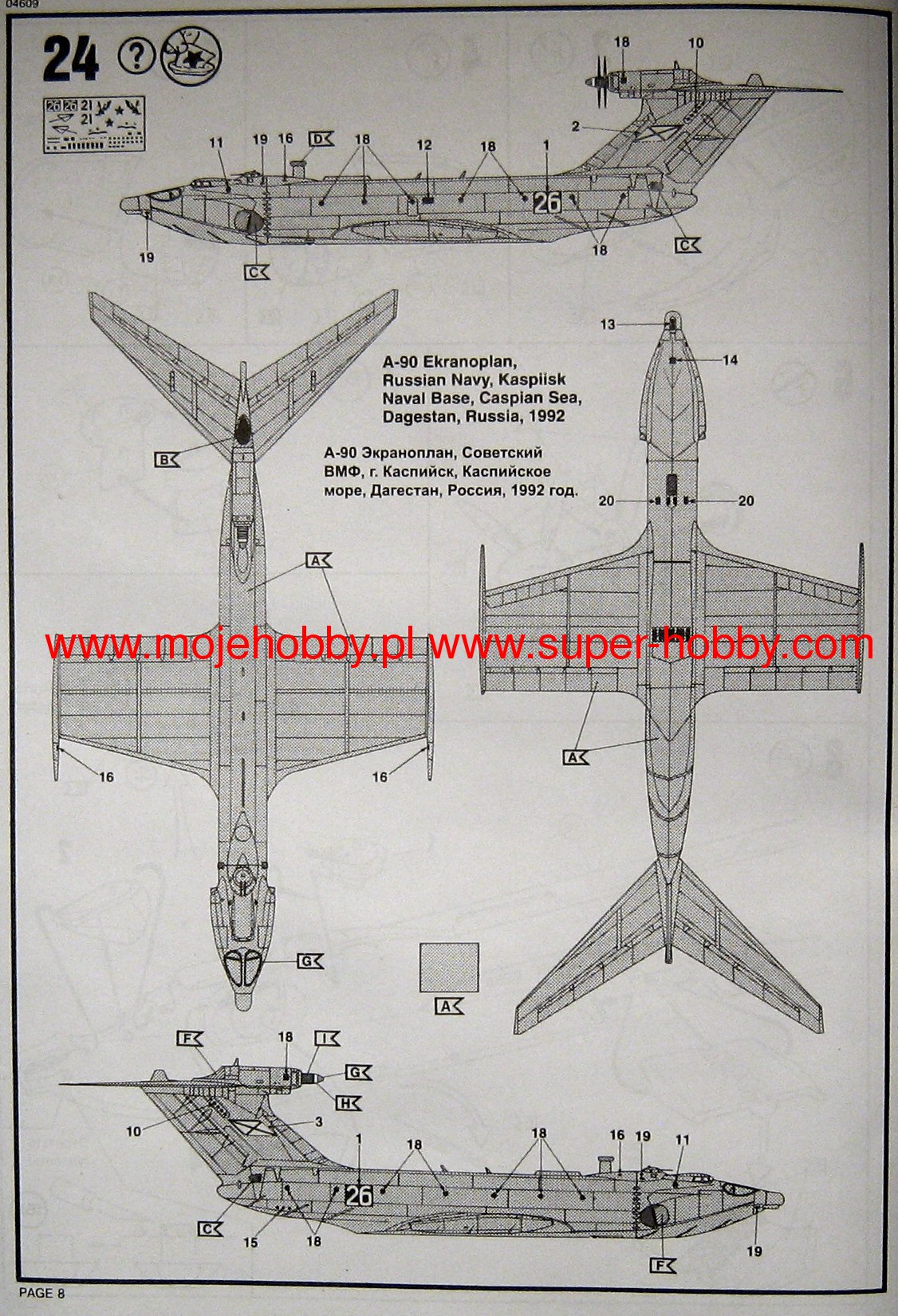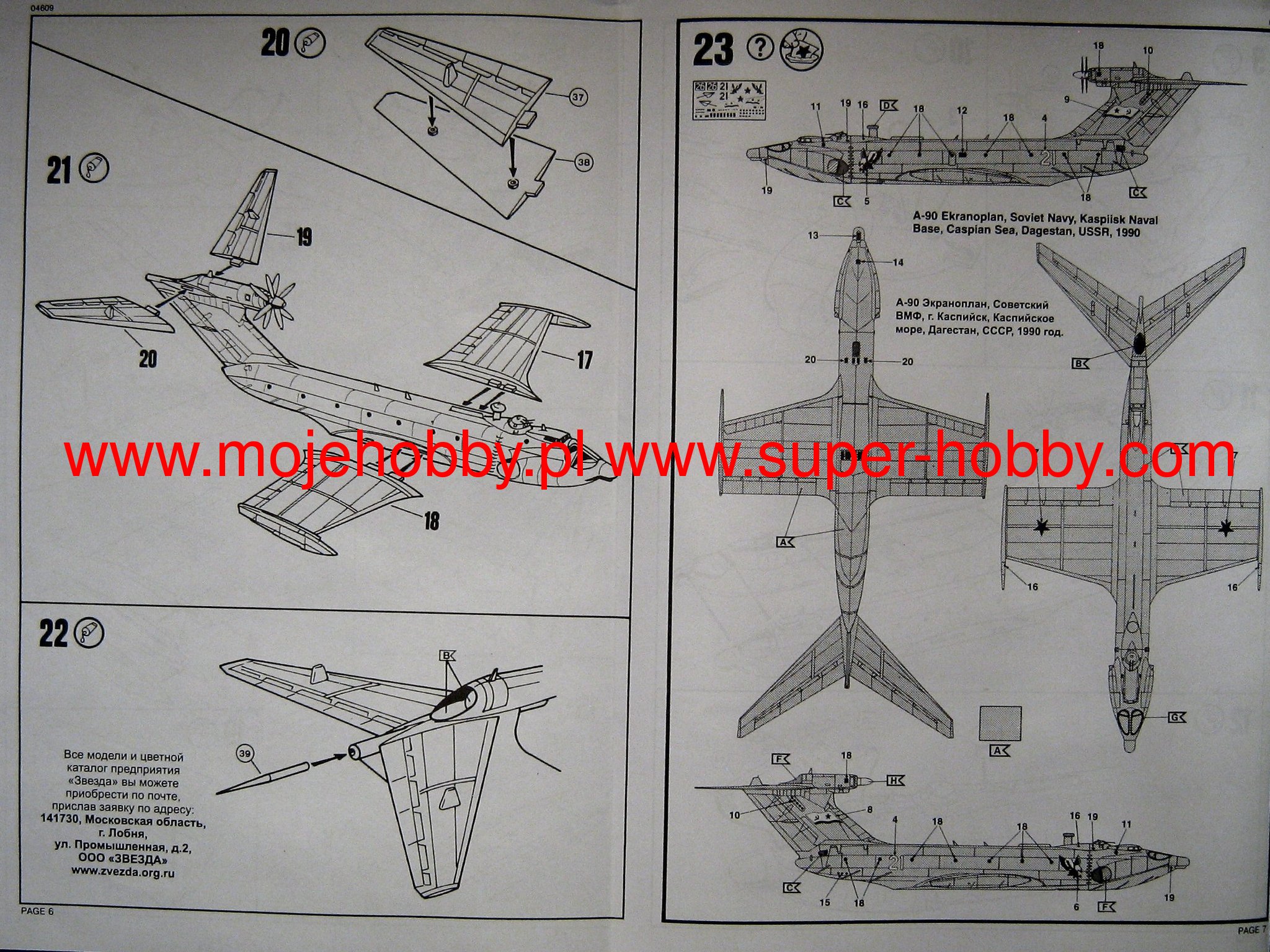 Сборная модель - Транспортно-десантный экраноплан А-90 "Орлёнок". Историческая справка: A-90 Орленок - транспортно-десантный экраноплан, разработанный в конструкторском бюро знаменитого Р.Е. Алексеева, создателя хорошо всем известных гражданских скоростных теплоходов на подводных крыльях Ракета, Метеор и других. Орленок был предназначен для переброски морских десантов на дальность до 1500 км со скоростью до 500 км/ч. Экраноплан имел корабельную грузоподъемность, принимая на борт через откидывающуюся вправо носовую часть до 200 морских пехотинцев с полным вооружением или две бронированные машины. Набор деталей из пластмассы для сборки одной модели самолета. Модель собирается при помощи специального клея, выпускаемого предприятием Звезда. Краски продаются отдельно от набора. Состав набора: отливки инструкция по сборке декаль
