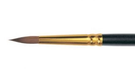 Описание Серия круглых кистей из колонка, короткая выставка, короткая чёрная матовая ручка, анодированная алюминиевая обойма. Волос колонка очень эласичен, а укороченная выставка придаёт ещё большую упругость, что делает эту кисть идеальной для работы как в акварельной, так и в пастозной технике. Форма мазка в виде конуса с идеальным зауженым кончиком, что, в свою очередь позволяет писать крупными плотными мазками, а также вести тонкую изящную линию. Кисть на короткой деревянной ручке, покрытой лаком. Применение: Акварель, Масло, Темпера, Гуашь. Жёсткость: 1
